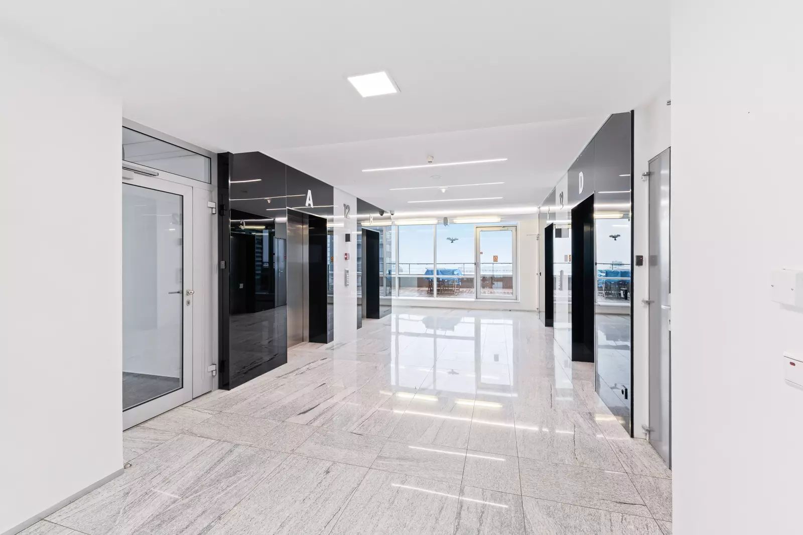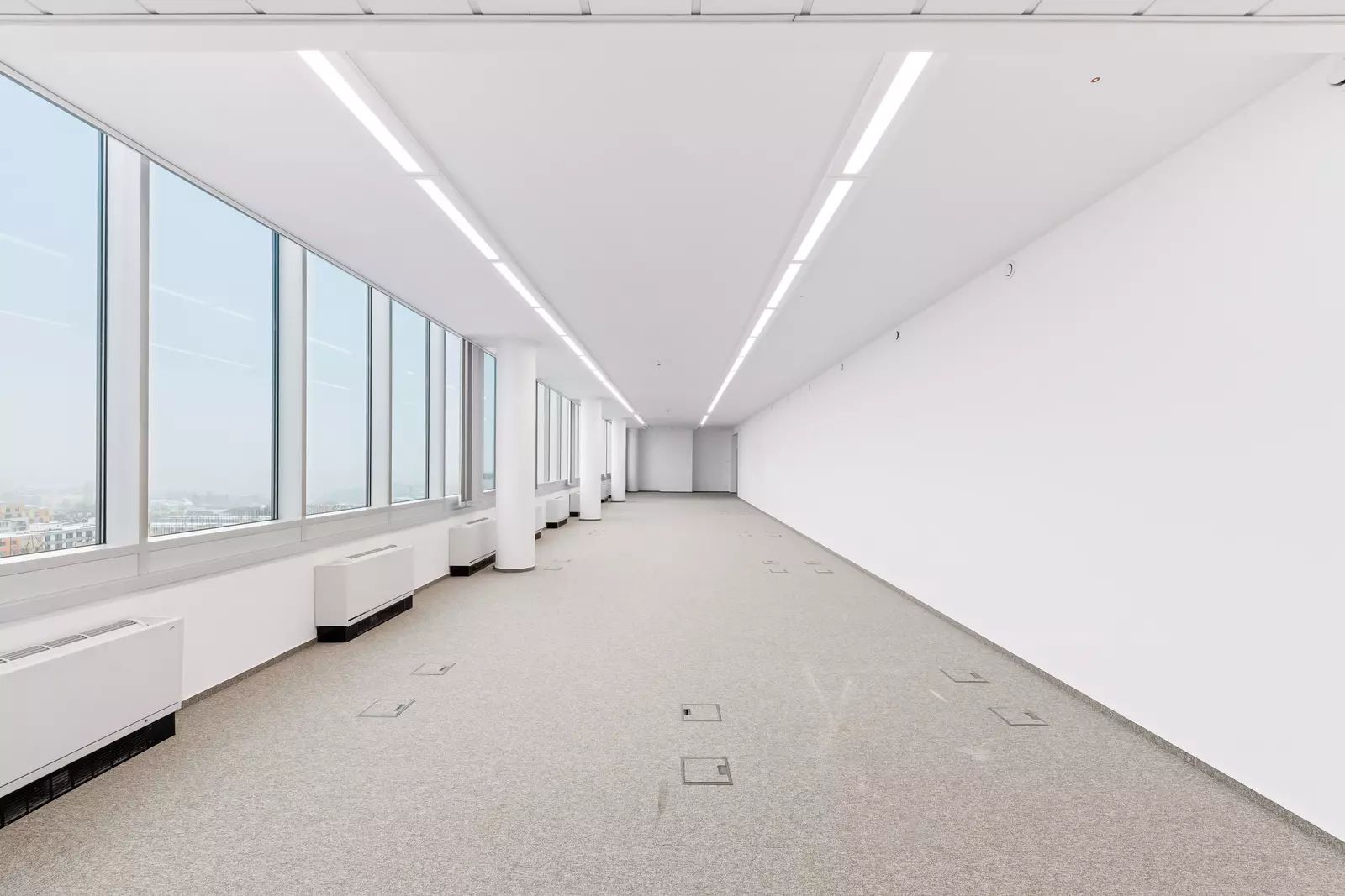 Jednotka se nachází v 8. NP a je řešena jako velký open space s kuchyňkou. Prostory lze dispozičně upravit dle potřeb budoucího nájemce.