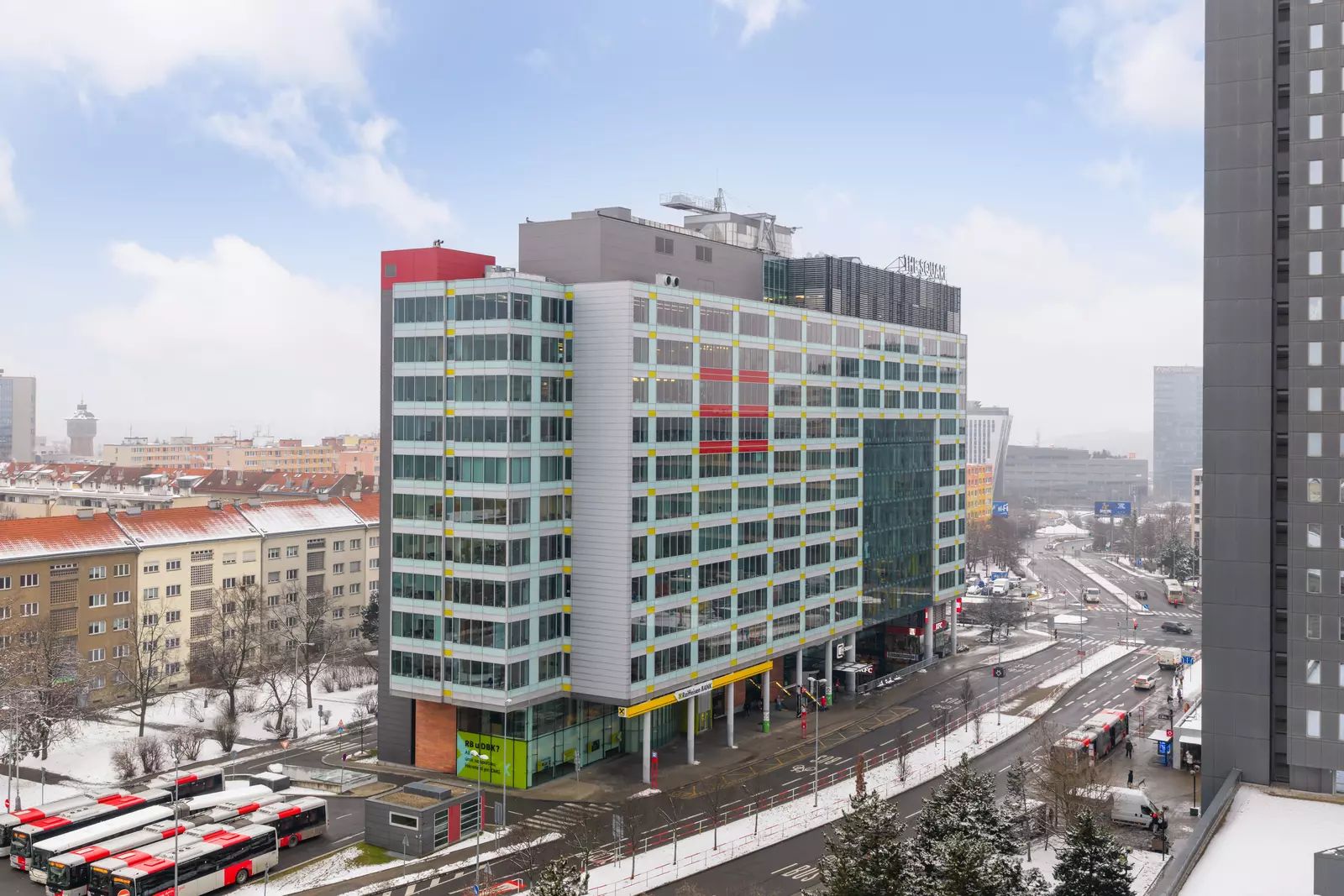 Budova nabízí panoramatické výhledy na Prahu a okolí. Objekt byl kolaudován v roce 2002 a disponuje celkovou plochou cca 19 000 m2.