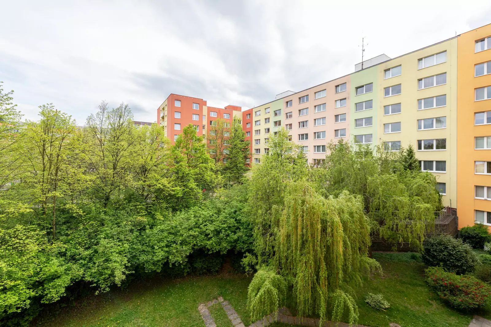 Tento panelový dům má vstup na vlastní oplocenou zahradu s možností sušení prádla, trampolínou pro děti a i místo k relaxaci – bezpečný prostor pro relax i dětské hry.