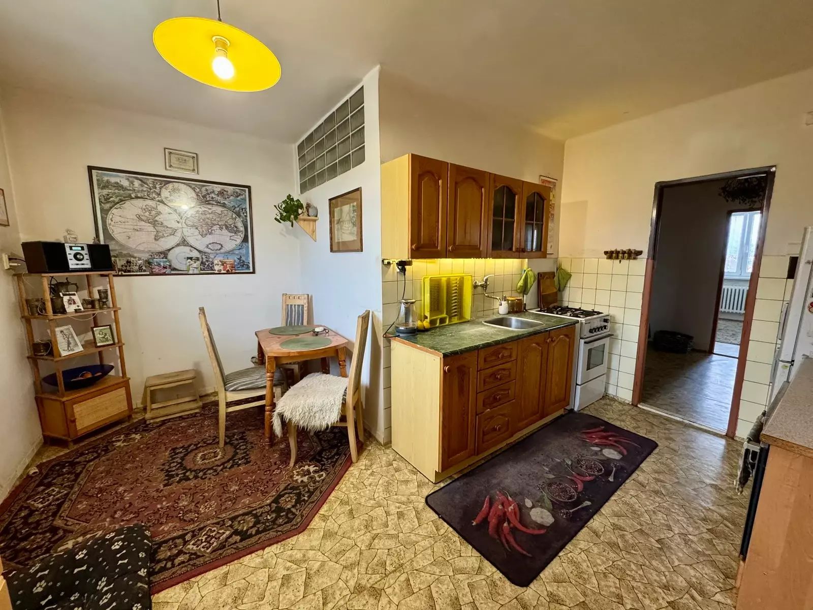 Byt je v původním, velmi zachovalém stavu a nabízí velký potenciál pro rekonstrukci dle vlastních představ. Díky své velikosti a dispozici poskytuje dostatek prostoru pro rodinné bydlení i možnost moderní přestavby. První čtyři fotky v galerii slouží jen jako vizualizace.
