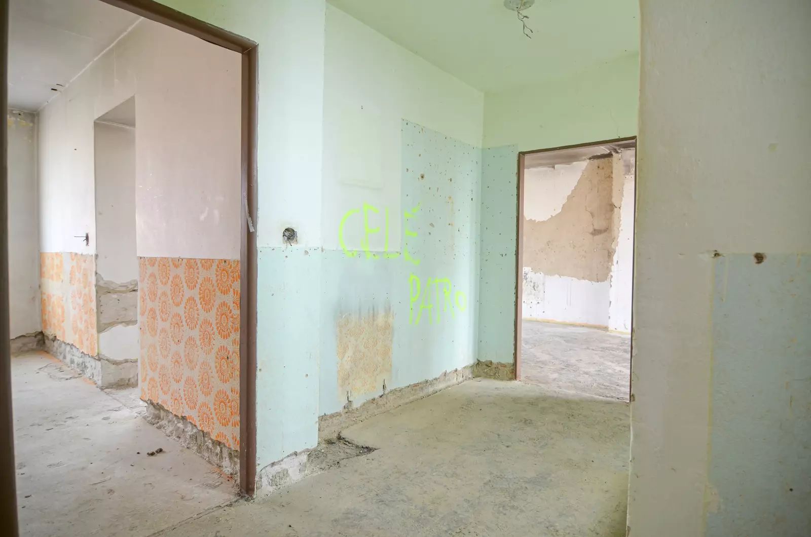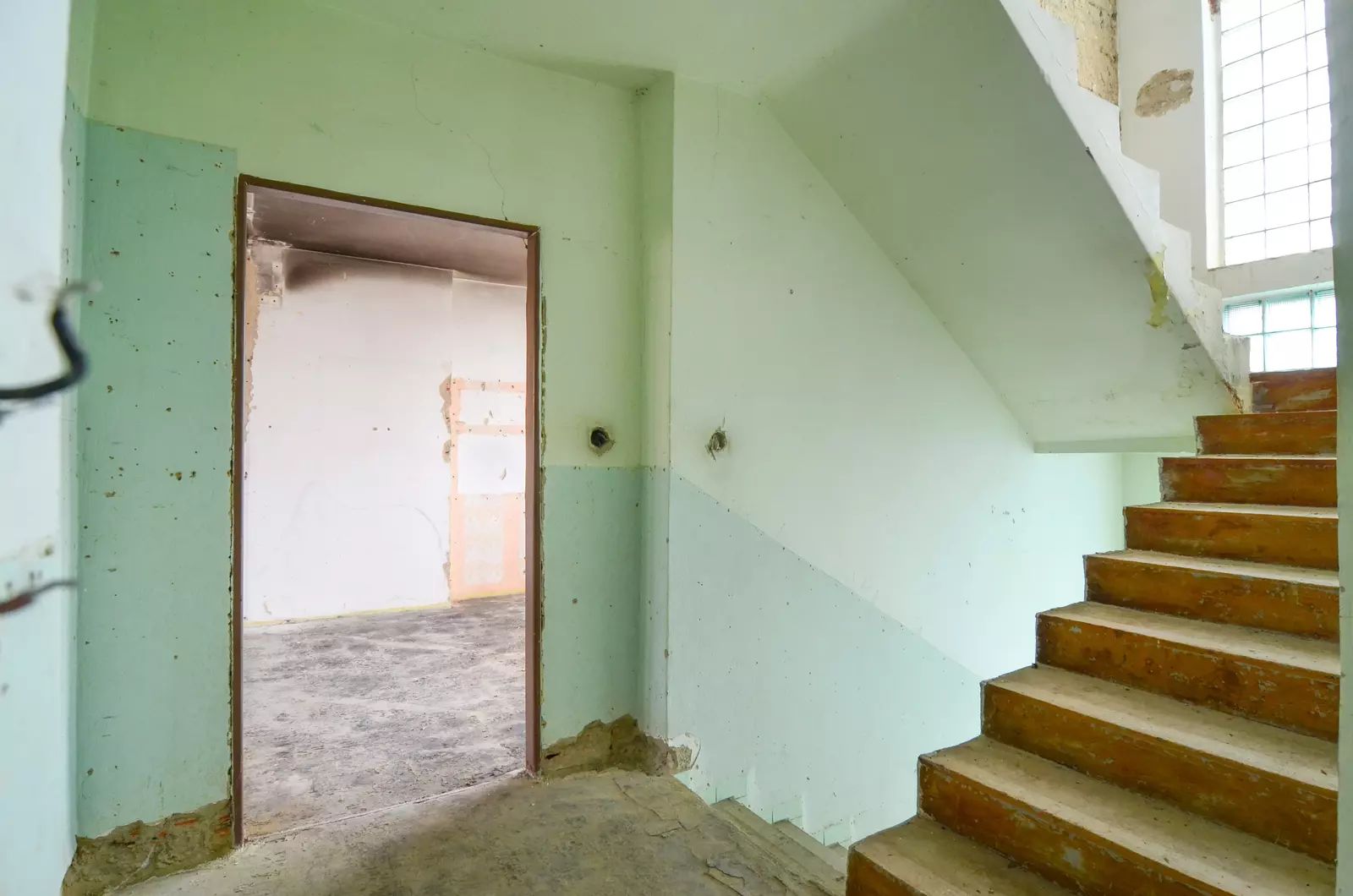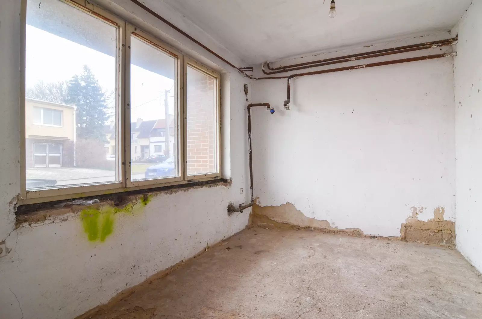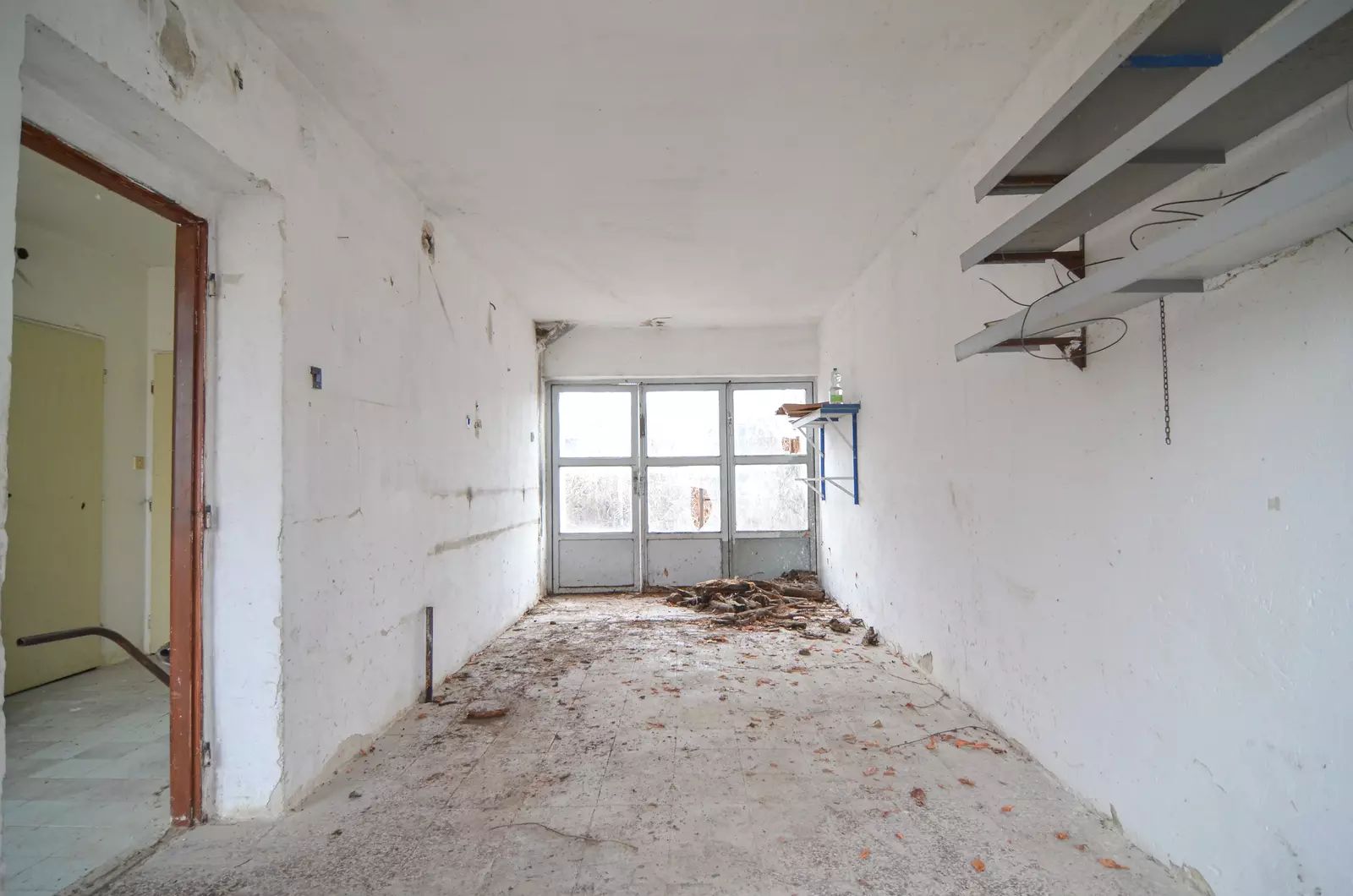 Dům je zcela vyklizený, odpojený od sítí a svým charakterem připomíná spíše hrubou stavbu.