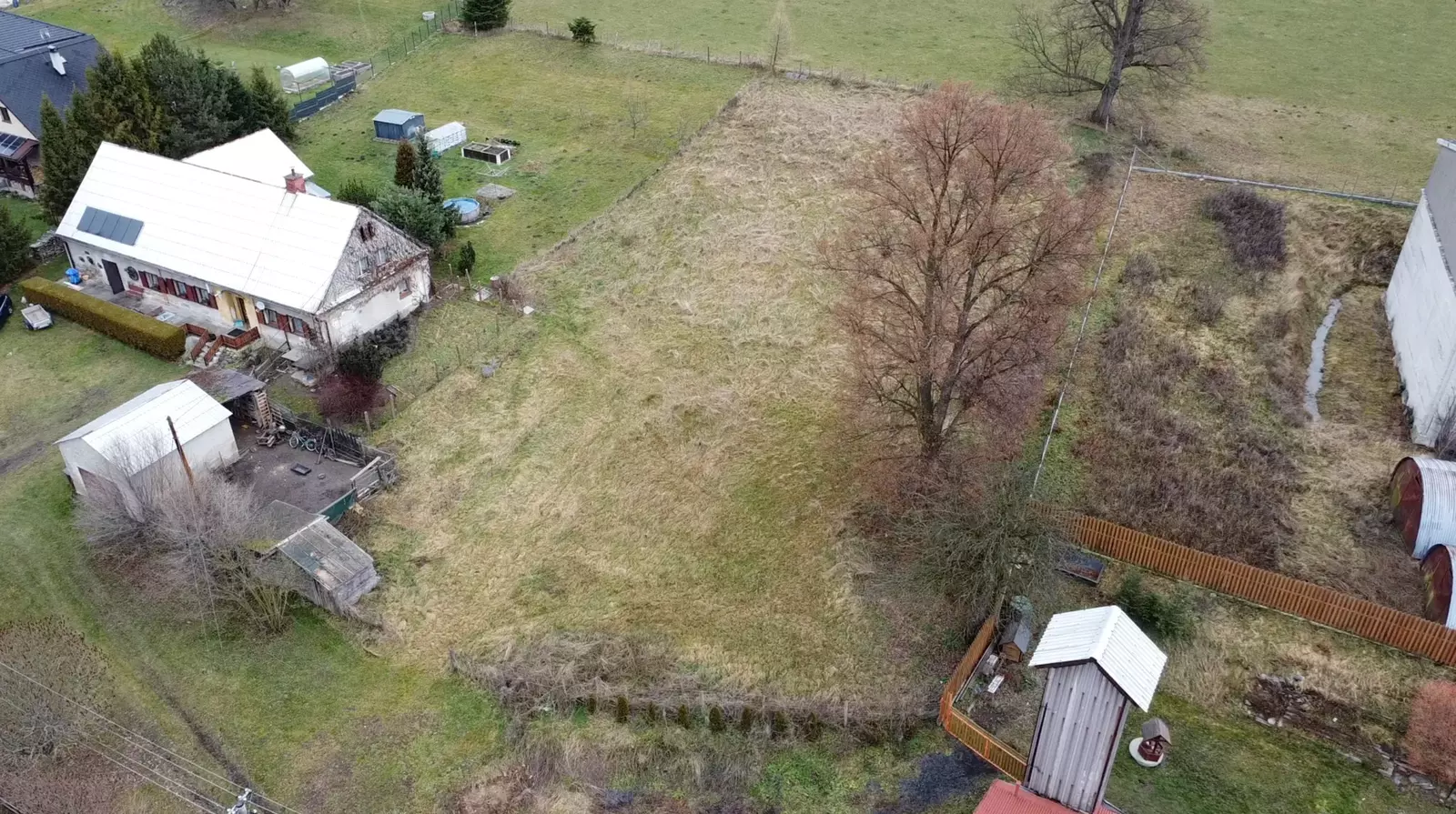 Pozemek se nachází na okraji obce v klidné části s přímou návazností na volnou krajinu. Okolí tvoří louky, pole a lesy, což zajišťuje dlouhodobě stabilní charakter území a příjemné soukromí.