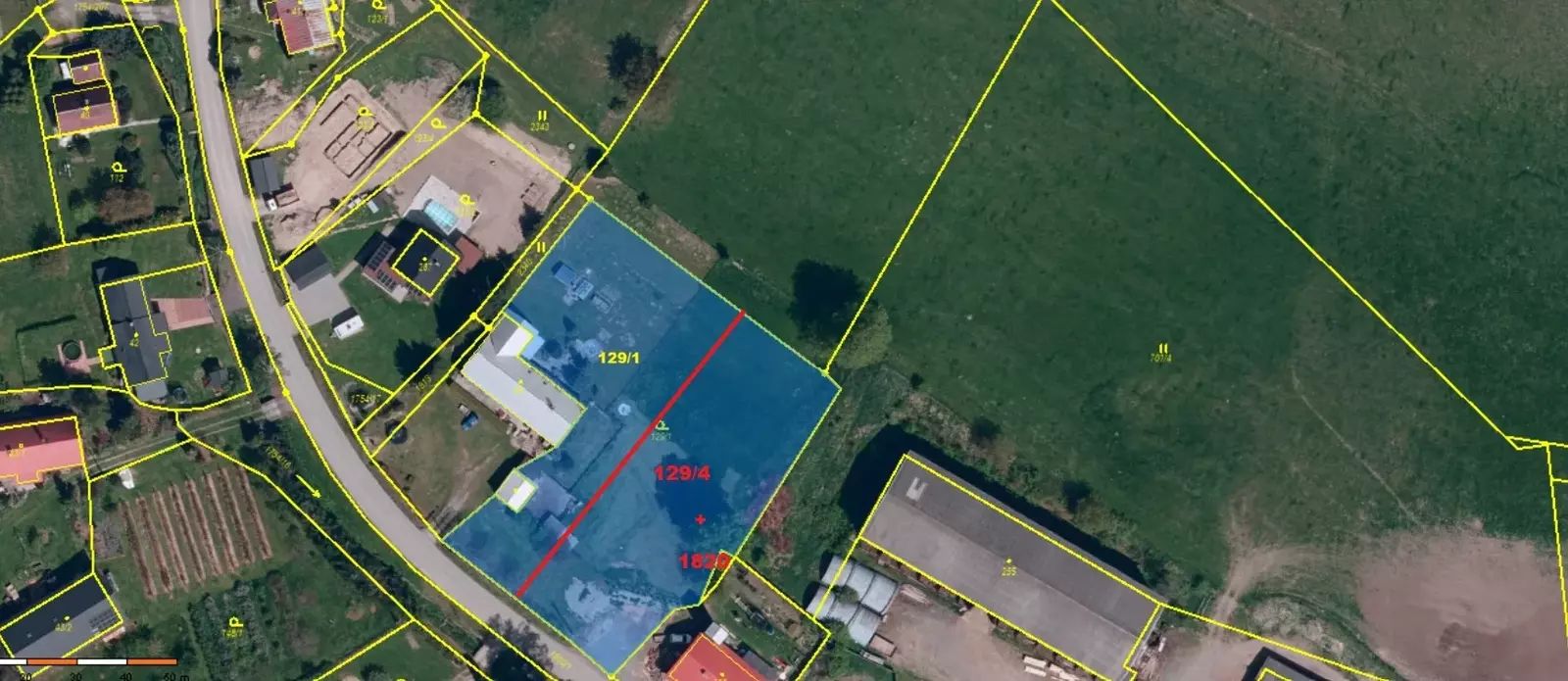 budoucí parcelou č. 129/4 o výměře 2 000 m² (vznikne oddělením ze stávající parcely č. 129/1),