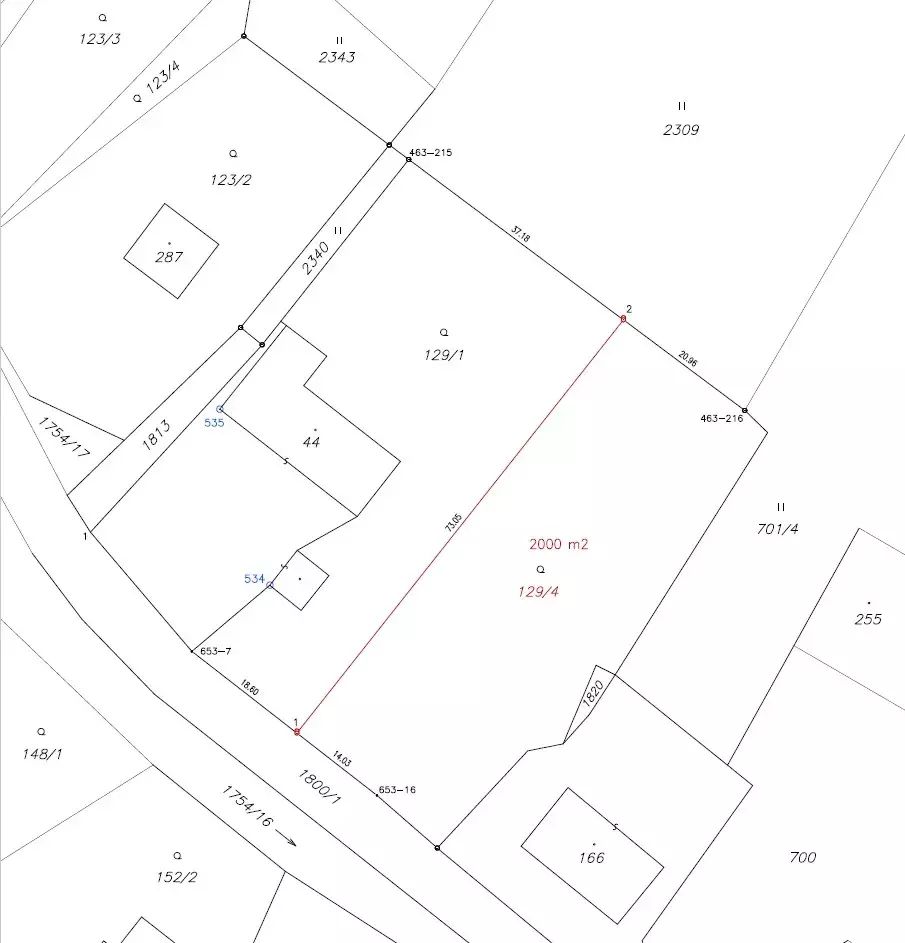 budoucí parcelou č. 129/4 o výměře 2 000 m² (vznikne oddělením ze stávající parcely č. 129/1) + pozemkem parc. č. 1820 o výměře 20 m² (zajištění přístupu).