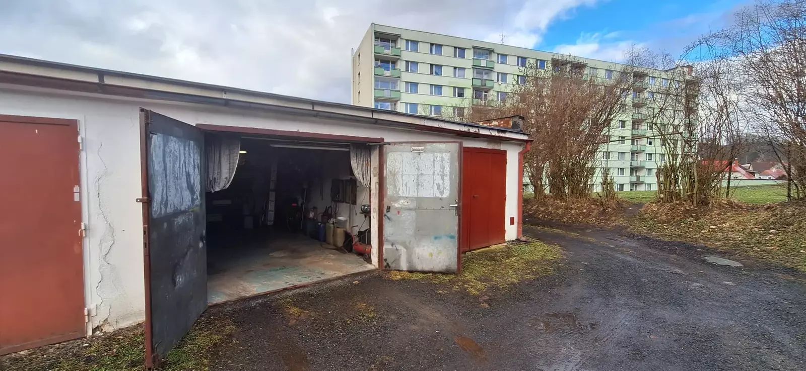 Příjezd ke garáži je po zpevněné komunikaci. Volná je ihned po prodeji.