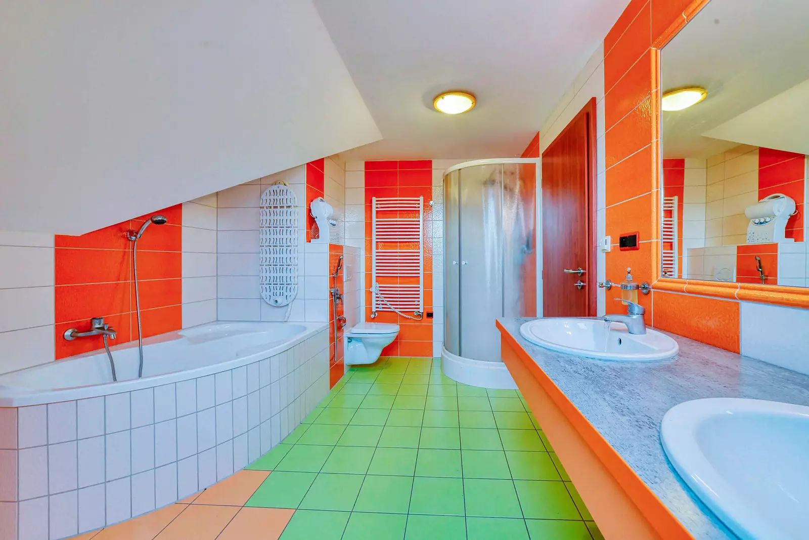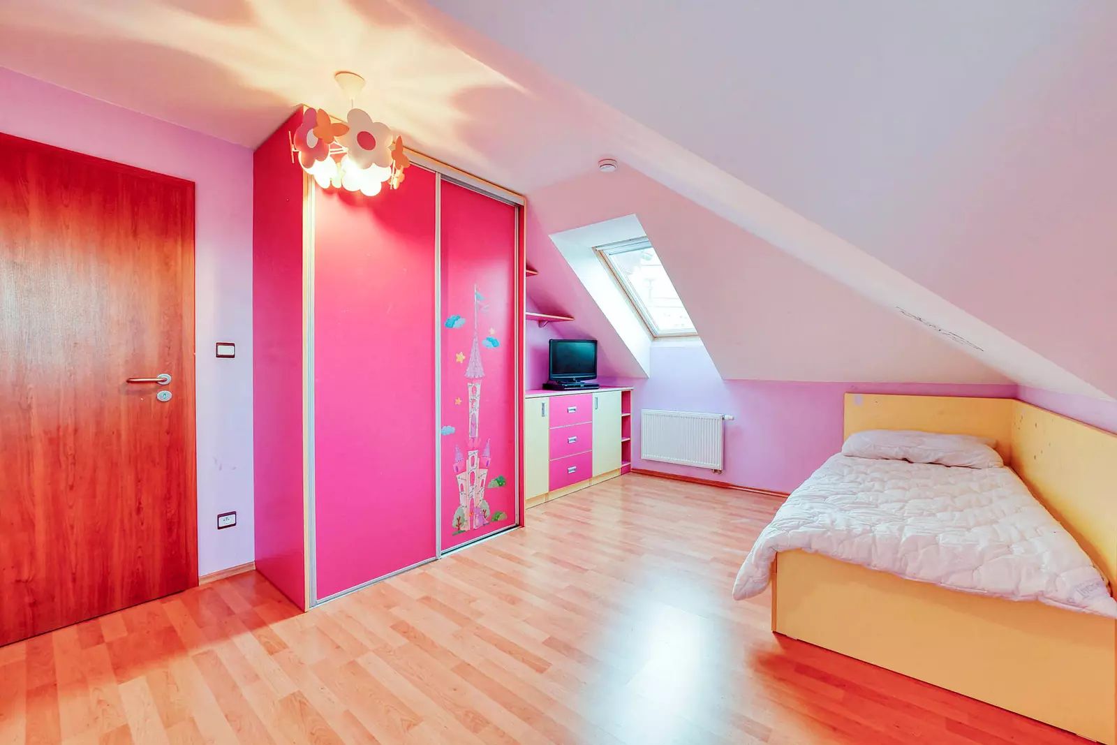 Ve 2. NP se nachází chodba, 2 x koupelna, 3 x dětský pokoj, ložnice se šatnou.