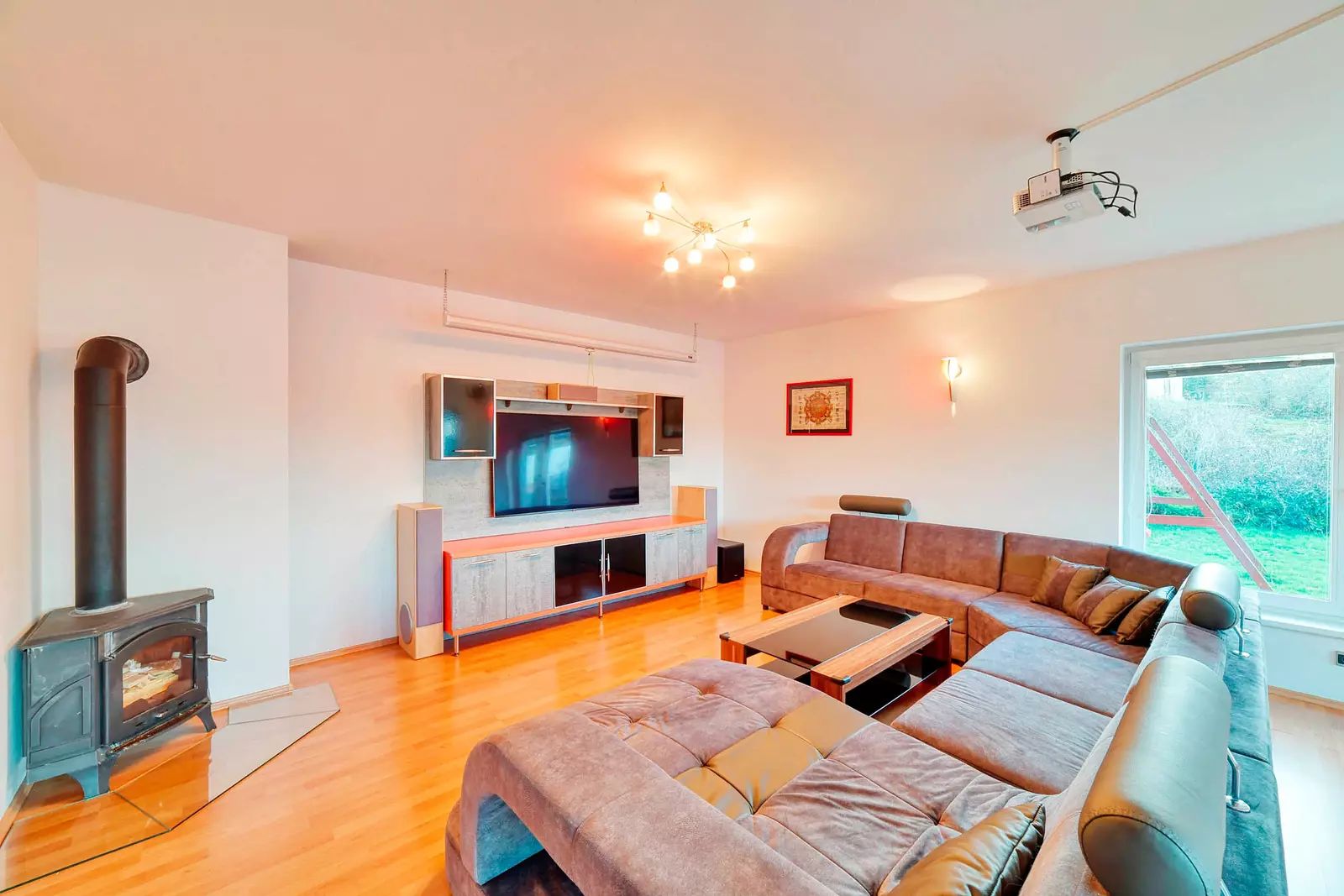 RD je vytápěný v celé ploše podlahovým topením, výhřevné žebříky v koupelnách (i včetně možnosti samostatného zapnutí na elektřinu), radiátory pod střešními okny, vše řízené kondenzačním plynovým kotlem se samostatným zásobníkem vody 120l Junkers s propojením na elektronický inteligentní systém řízení vytápění Devilink. Dále dvěma klimatizačními jednotkami v patře domu. Zabezpečení je opatřeno OnLine bezpečnostním systémem s čidly pohybu, požáru, plynu a OnLine kamerou. Celoplošně rozvod počítačové sítě, TV+rádio+SAT. V obývacím pokoji je rozvedeno 6+1 domácí kino a WI-FI projektor s plátnem o úhlopříčce 2,2 m. Obývací pokoj je spojen s venkovní zastřešenou terasou a zahradou celoplošným posuvným franc. oknem. V domě i garáži je rozveden centrální vysavač.
