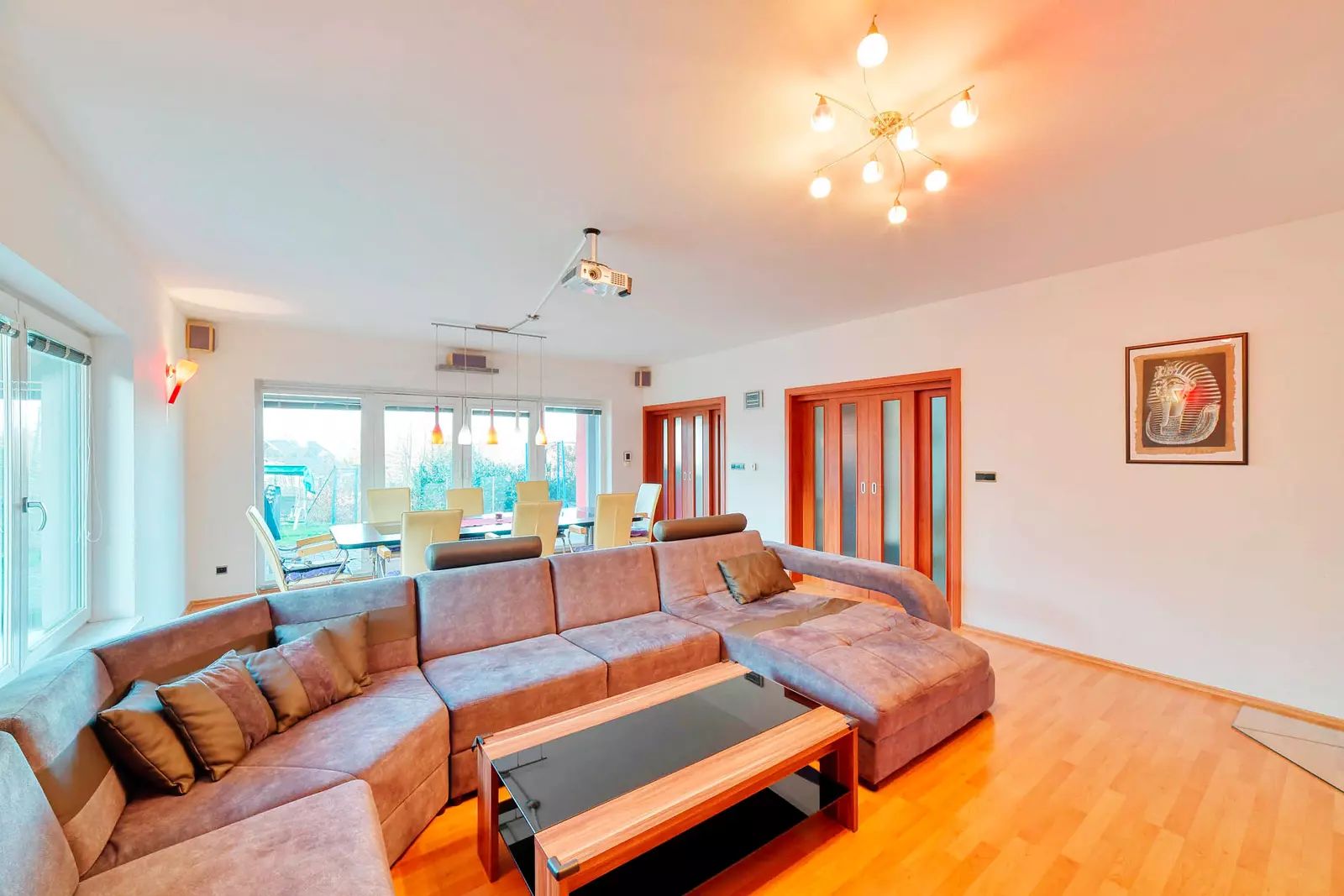 Nabízený RD je dispozice 5+1, podlahové plochy 222 m2 se zahradou o rozloze 938 m2.