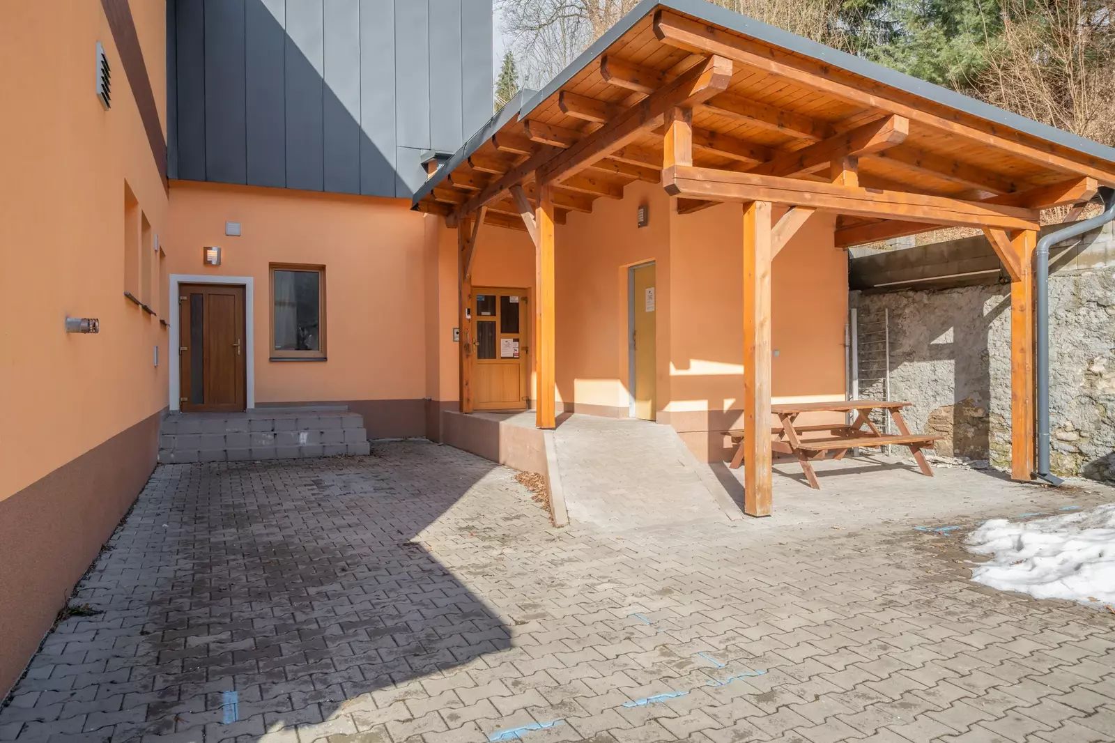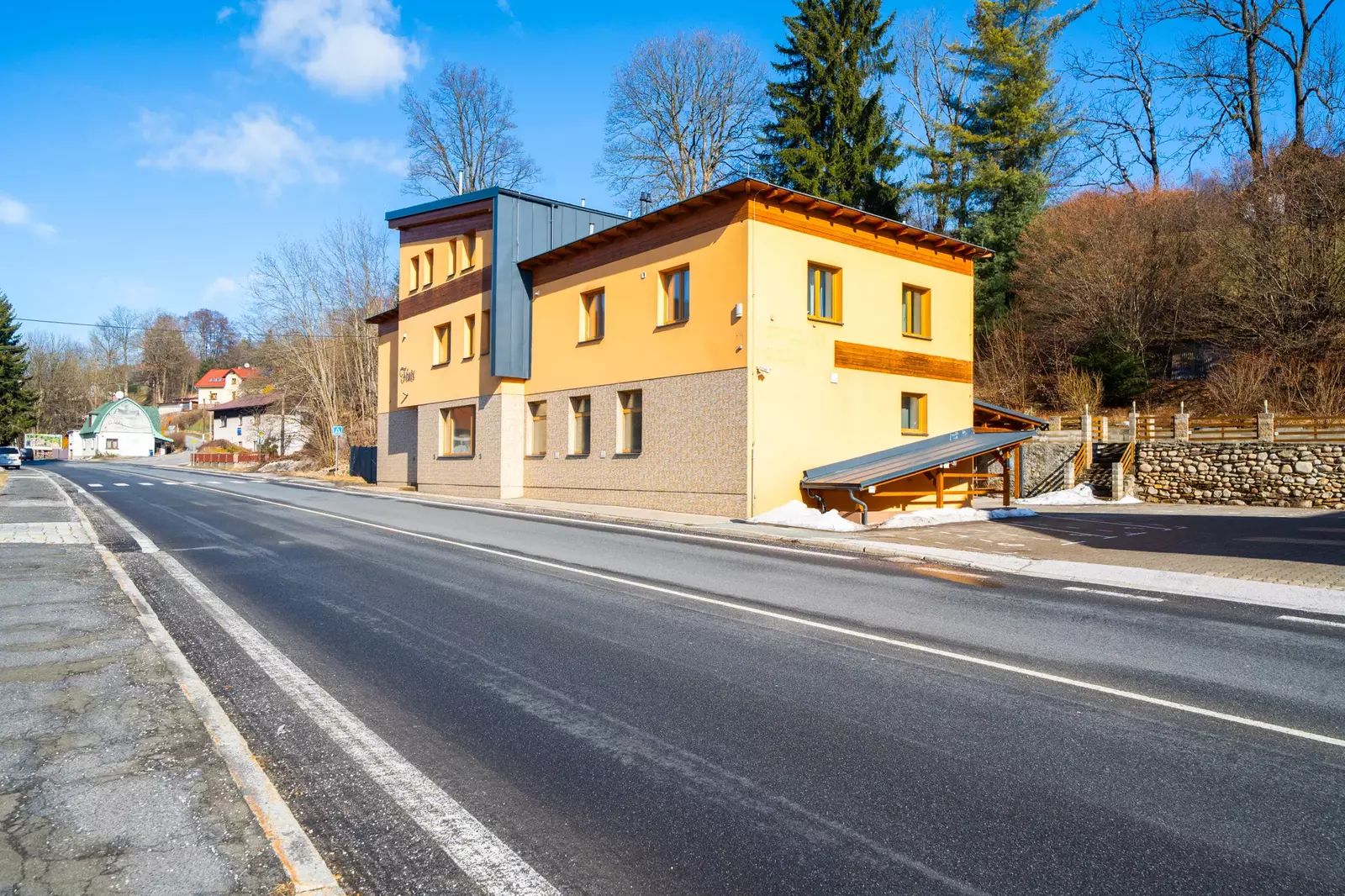 Umístění bytového domu je u hlavní komunikace II/295 směrem na Špindlerův Mlýn (cca 15 min. jízdy). Jedná se o žádanou lokalitu s výbornou dostupností služeb, včetně mateřské školy, základní školy, restaurací, a především sportovních zařízení - lyžařský areál Vejsplachy - v zimě s rolbovanou stopou (10 min. pěšky), pro sjezdové lyžování Ski areál Kněžický Vrch či Herlíkovice (4 min. jízdy), zimní stadion-bruslení (5 min. jízdy), nový plavecký bazén (10 min. jízdy), fotbalový stadión (8 min. jízdy) a případně další sportovní aktivity. Dopravní obslužnost v oblasti zajistí jak vlastní automobil, tak místní autobusová doprava. Prezentovaná nemovitost je ideální volbou pro ty, kteří hledají kvalitní bydlení s kompletním vybavením a ve vyhledávané lokalitě.