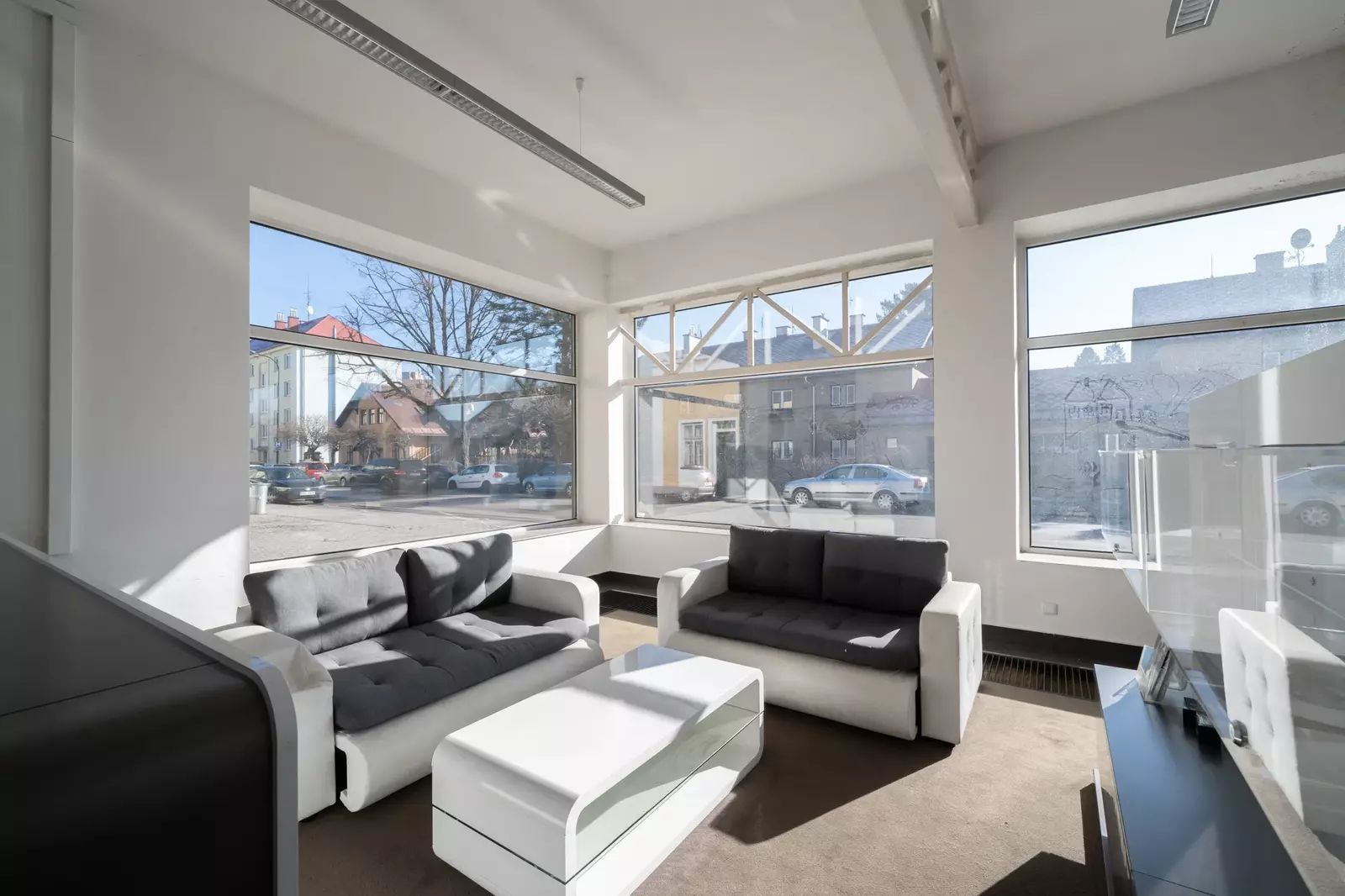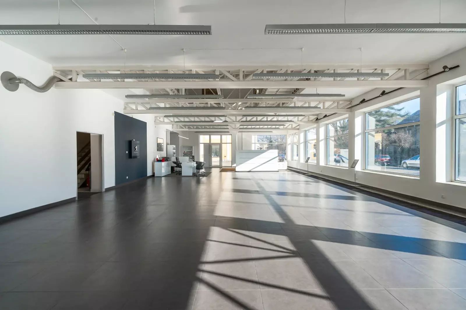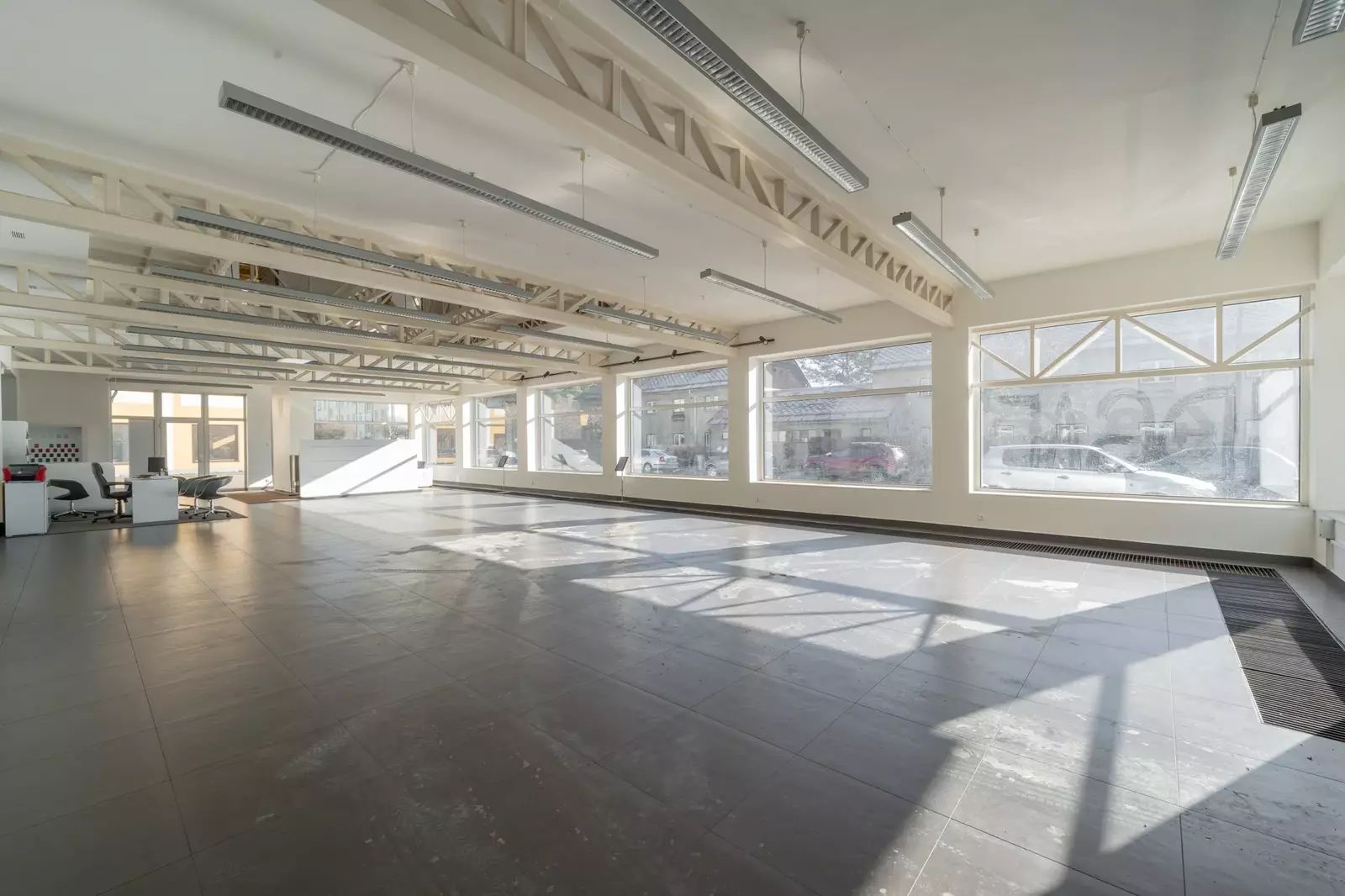 • Moderní prosklený showroom (236 m2) se zázemím, kancelářemi v patře a archivem. Ideální pro prodejnu, restauraci, klientské centrum nebo sídlo firmy.
