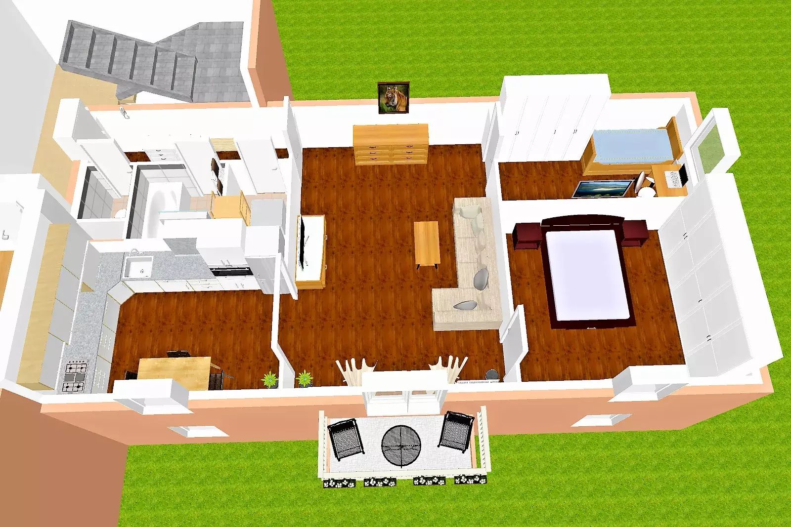 Příjemným doplňkem je balkon orientovaný do klidného okolí, sklepní koje a vlastní venkovní parkovací místo přímo před domem, které výrazně zpříjemňuje každodenní fungování domácnosti.