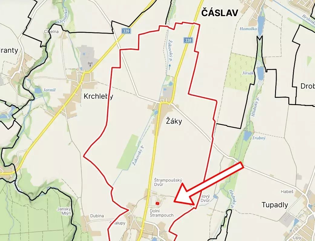 Prodej pozemku 898m2 pro výstavbu RD v obci Žáky