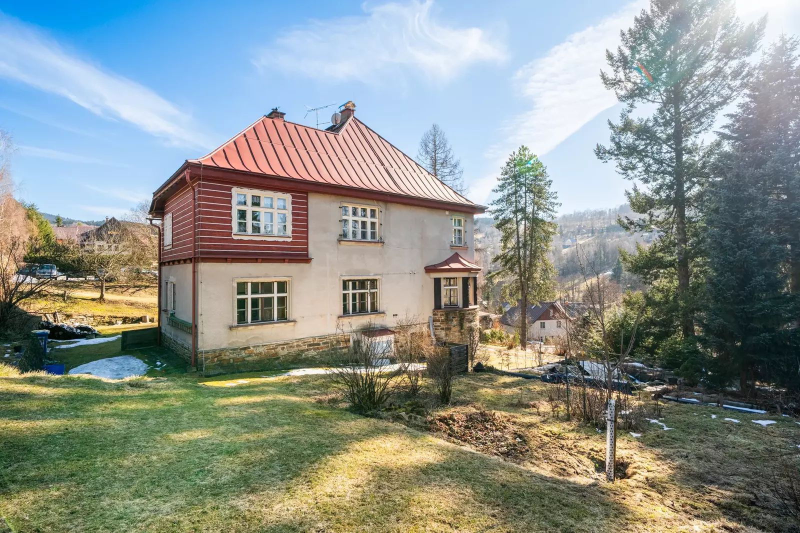 Nabízíme bytovou jednotku o dispozici 3+1 v osobním vlastnictví o výměře 88 m², situovanou v prvorepublikové vile v Horní Rokytnici. Dům s pouhými šesti bytovými jednotkami si zachovává původní architektonické prvky, je zasazen do klidného prostředí se zahradou a nabízí komorní atmosféru i větší soukromí než běžný bytový dům.