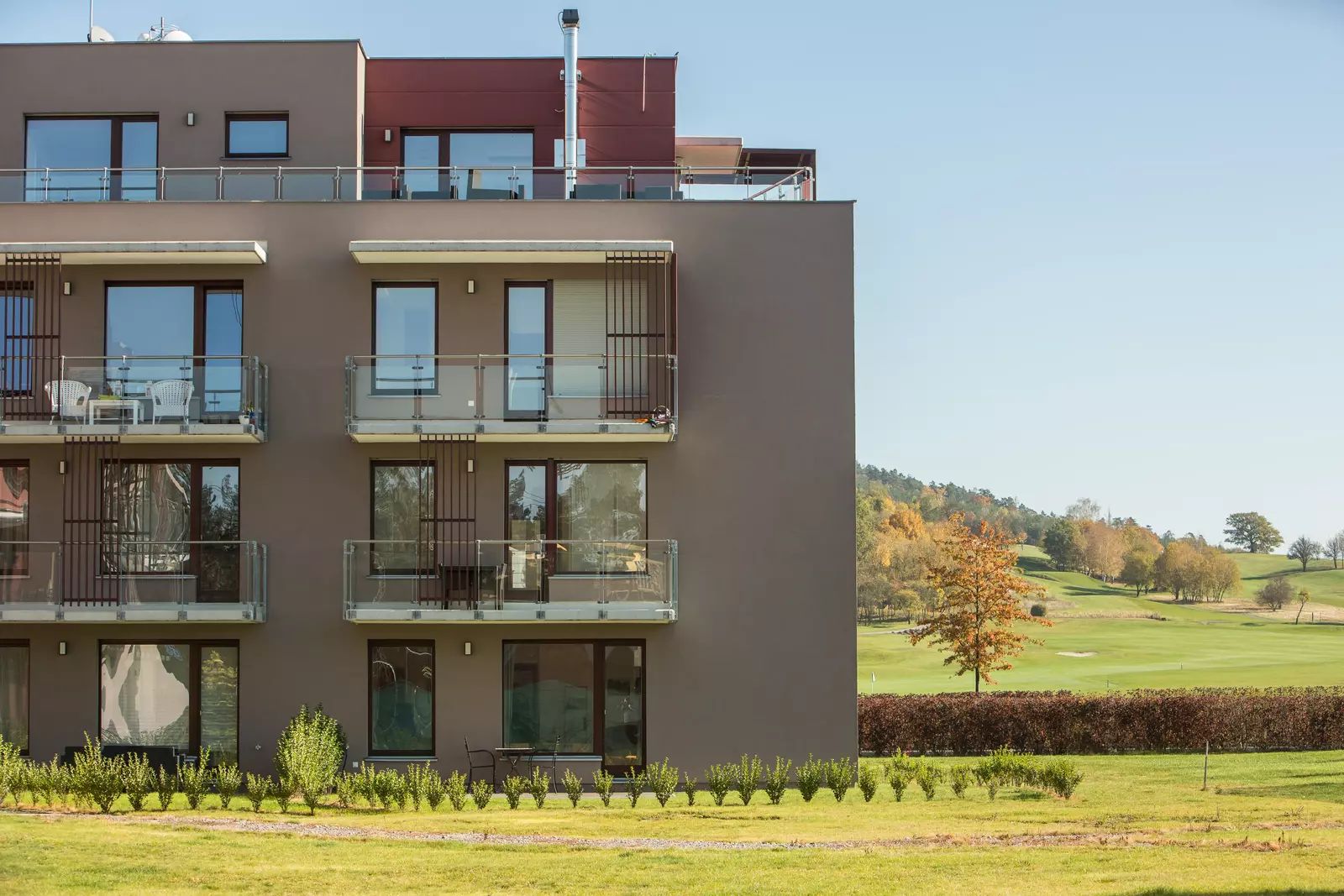 Krásné prostředí okolo nabízí mnoho možností pro volnočasové aktivity, od soukromého bazénu v areálu, až po beach volleybal, golf a relaxační procházky v nedalekém lese.