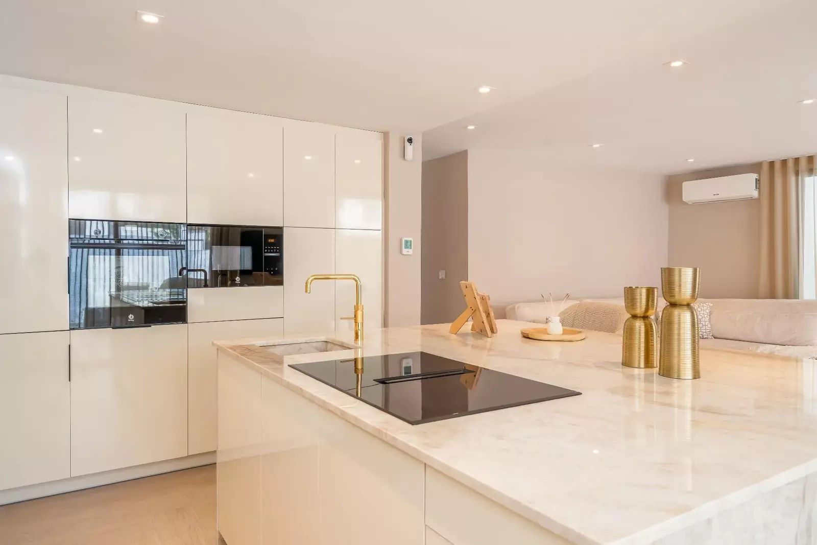 Druhou částí této exkluzivní nabídky je samostatný apartmán s vlastním přístupem z vedlejší ulice, což zajišťuje naprostou intimitu obou jednotek. Apartmán disponuje třemi ložnicemi, koupelnou a obývacím pokojem s integrovanou kuchyní. I tato část má svou vlastní velkou terasu, nezávislý bazén a vyhrazené parkovací stání. Díky oficiální turistické licenci představuje tento objekt výjimečnou investiční příležitost s garantovaným celoročním příjmem.