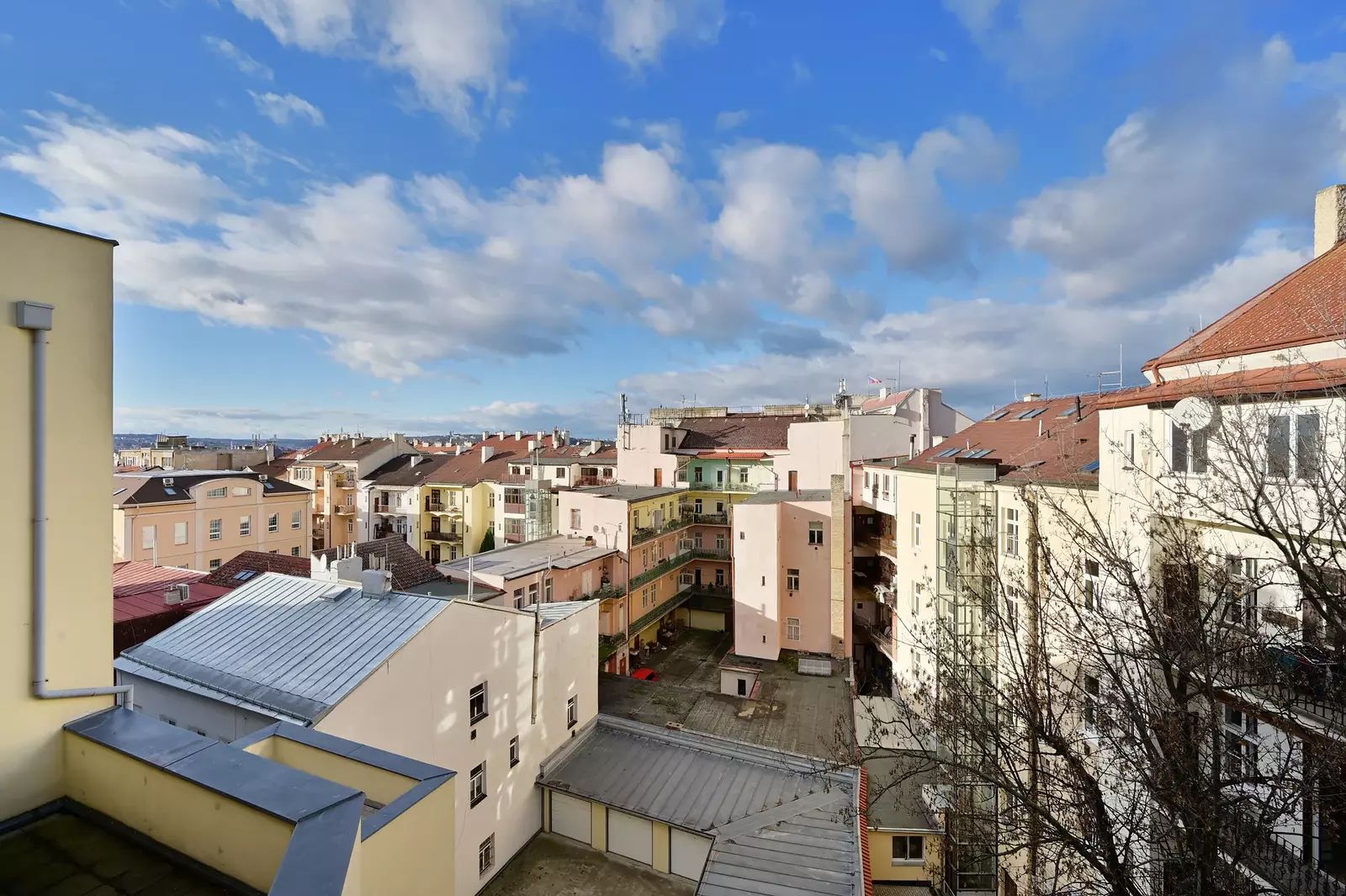 Byt 2+kk s balkonem v prestižní lokalitě Vinohrady, Praha 2 – Máchova ulice, výhled na panorama města, výtah v domě, ihned volný