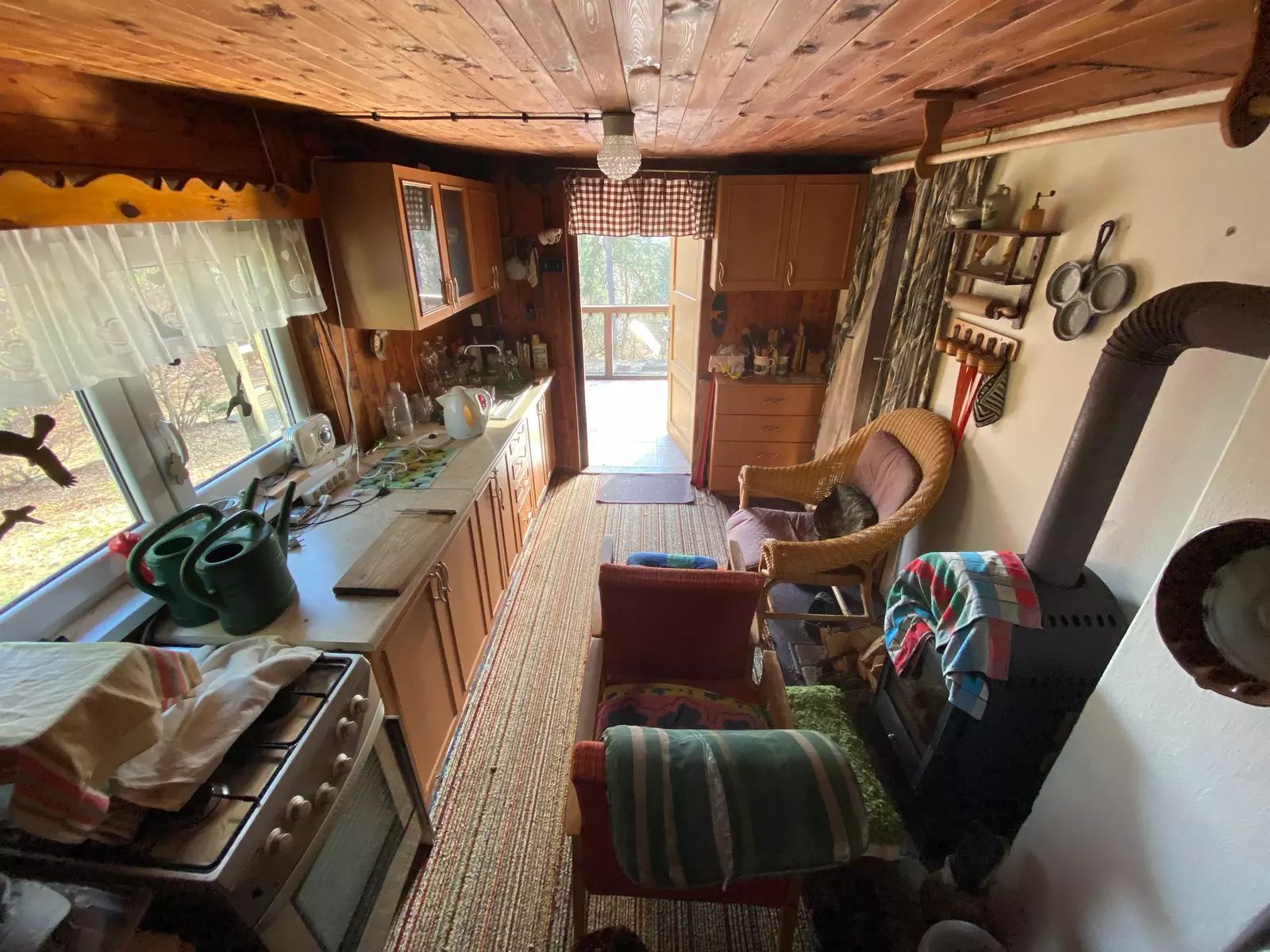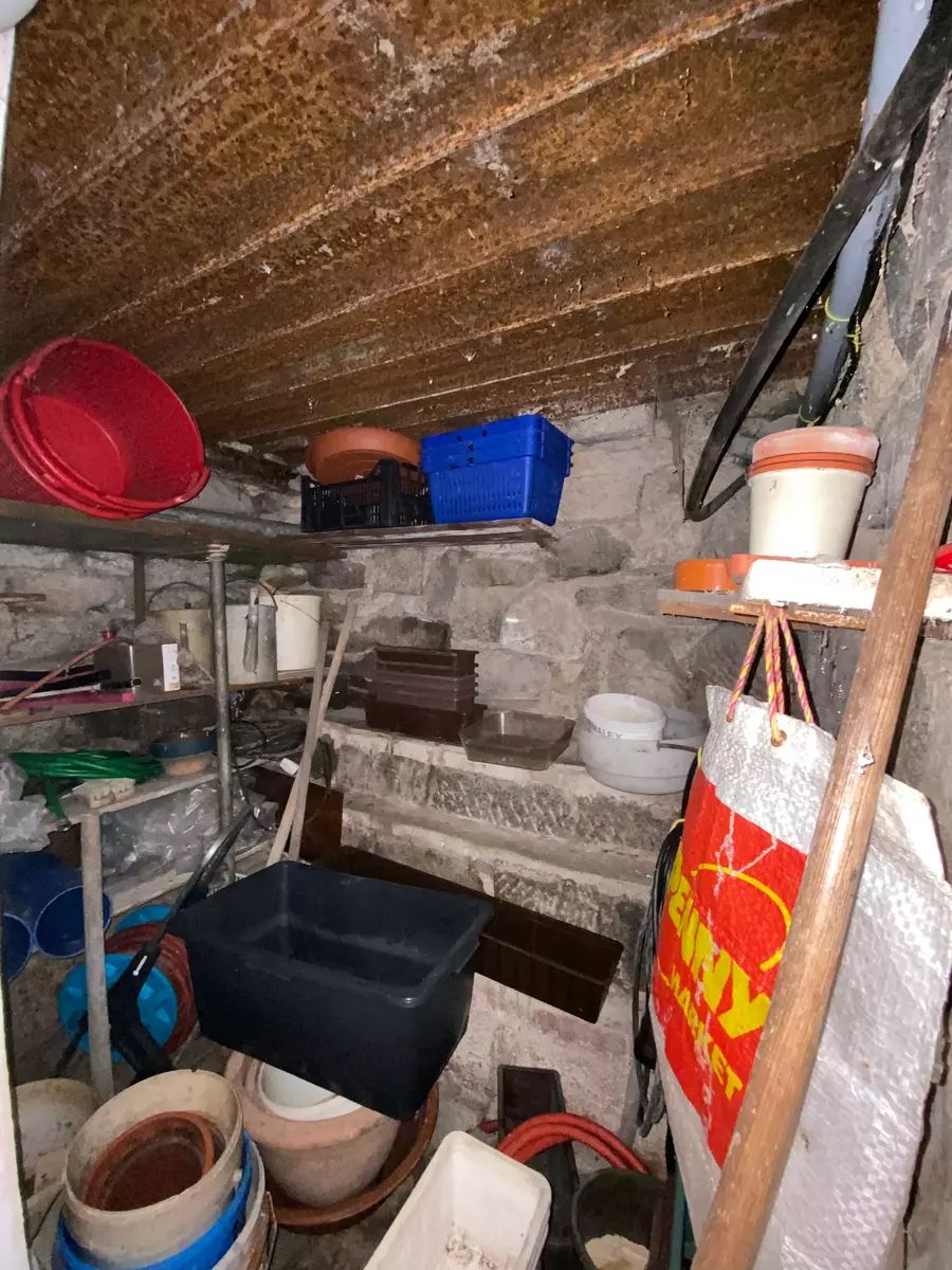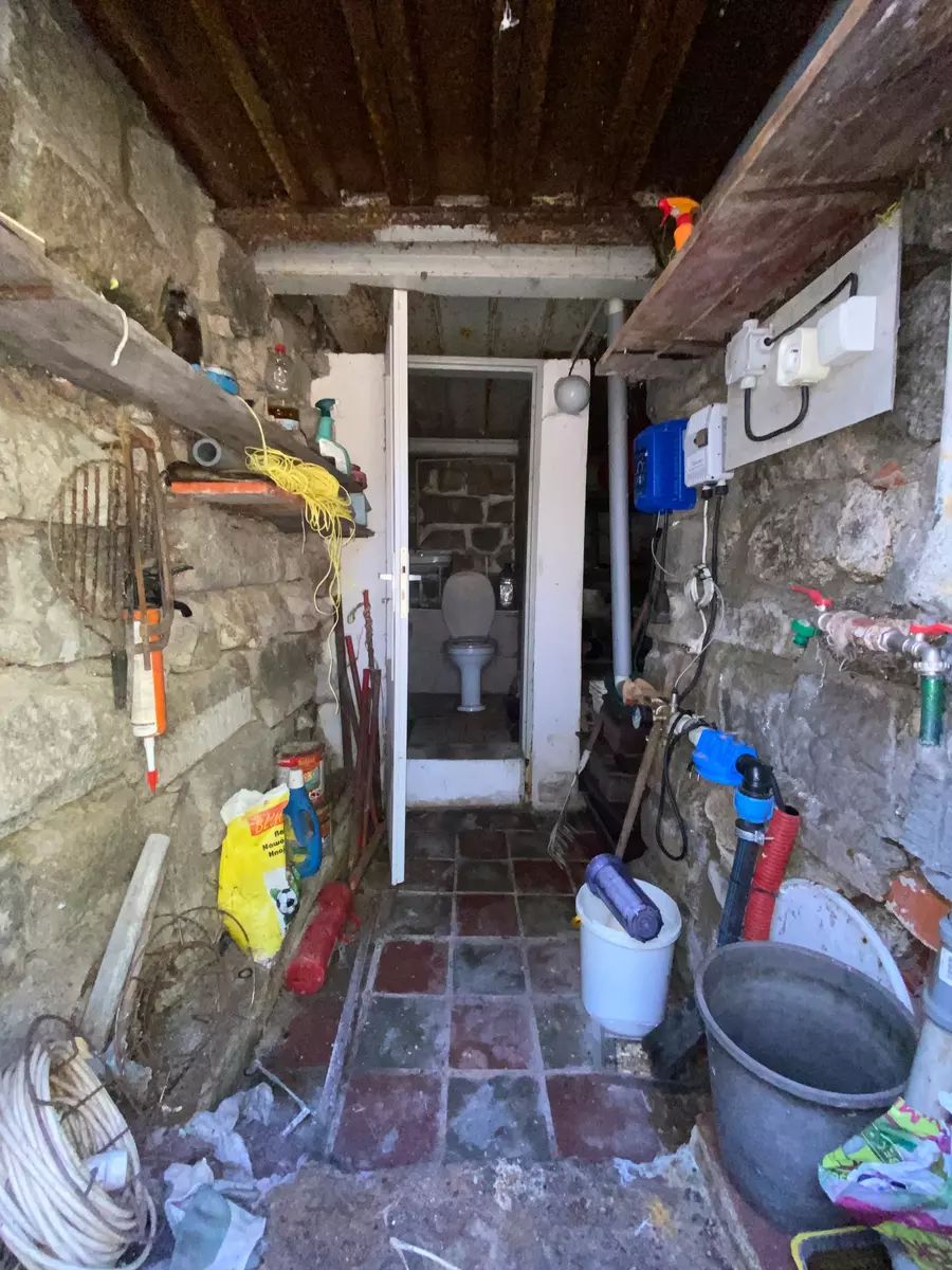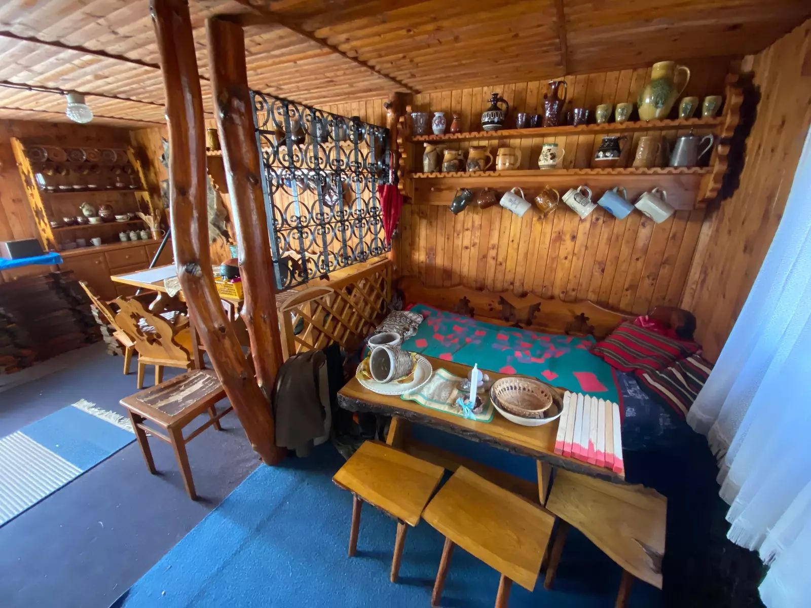 V její spodní části, se samotným vstupem je suterén chaty, je využívaný jako sklepní část pro uložení potřebných věcí, nářadí aj. Dále WC s umyvadlem a vodní čerpadlo obsluhující venkovní vlastní studnu o hloubce vrtu až 84m, vnitřní rozvod vody pro WC s umyvadlem až do kuchyně. V 1. vyvýšeném NP je po pár kamenných schodech samotný vstup do obytné části chaty, rozdělené na dvě části. Levá část je užívaná jako obývací pokoj, pro relaxaci, posezení, zábavu s částečným vybavením. Její pravá část je kuchyně s kuchyňskou linkou, kamna - sporák na propan butan, lednice, krbová kamna a v zadní části místnosti, vstup do podkroví. V podkroví chaty se nachází větší místnost užívaná jako ložnice s otevřeným balkónem směrem na jižní stranu. Vedle ložnice jsou dva menší samostatné uzavřené prostory vhodné pro uložení věcí, oblečení atd. s možným výstupem na zbývající půdní část chaty.