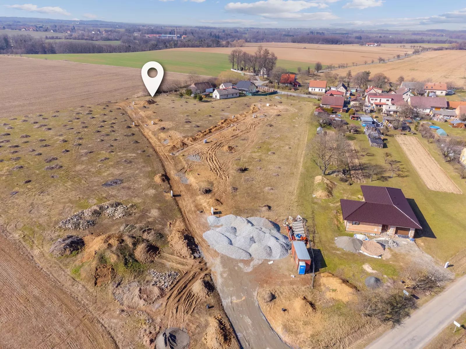 Pozemek se nachází na okraji obce v klidné lokalitě s krásným výhledem do okolní krajiny. Parcela je rovinatá, což umožňuje snadnou a ekonomickou výstavbu rodinného domu bez nutnosti větších terénních úprav.
