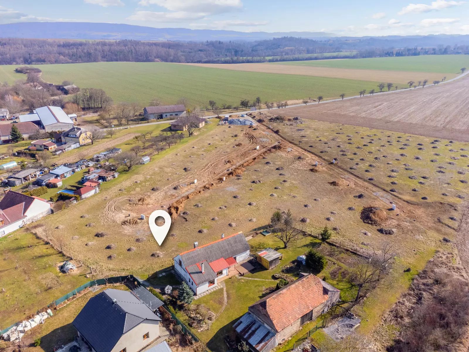 Pozemek se nachází na okraji obce v klidné lokalitě s krásným výhledem do okolní krajiny. Parcela je rovinatá, což umožňuje snadnou a ekonomickou výstavbu rodinného domu bez nutnosti větších terénních úprav.