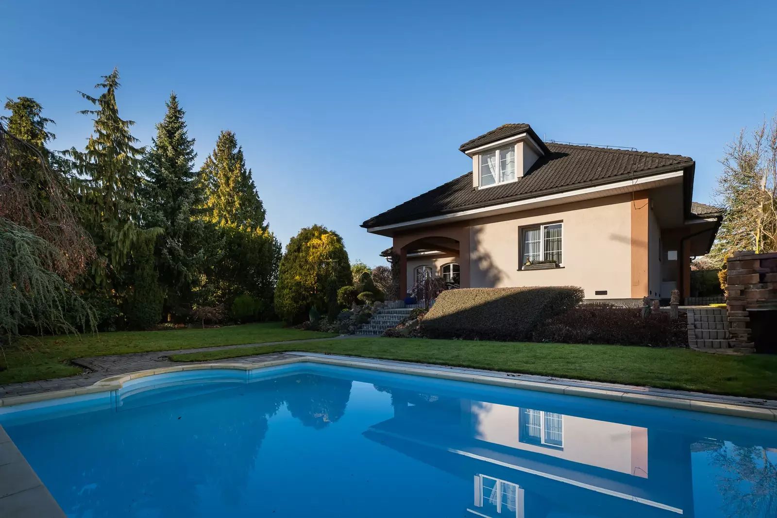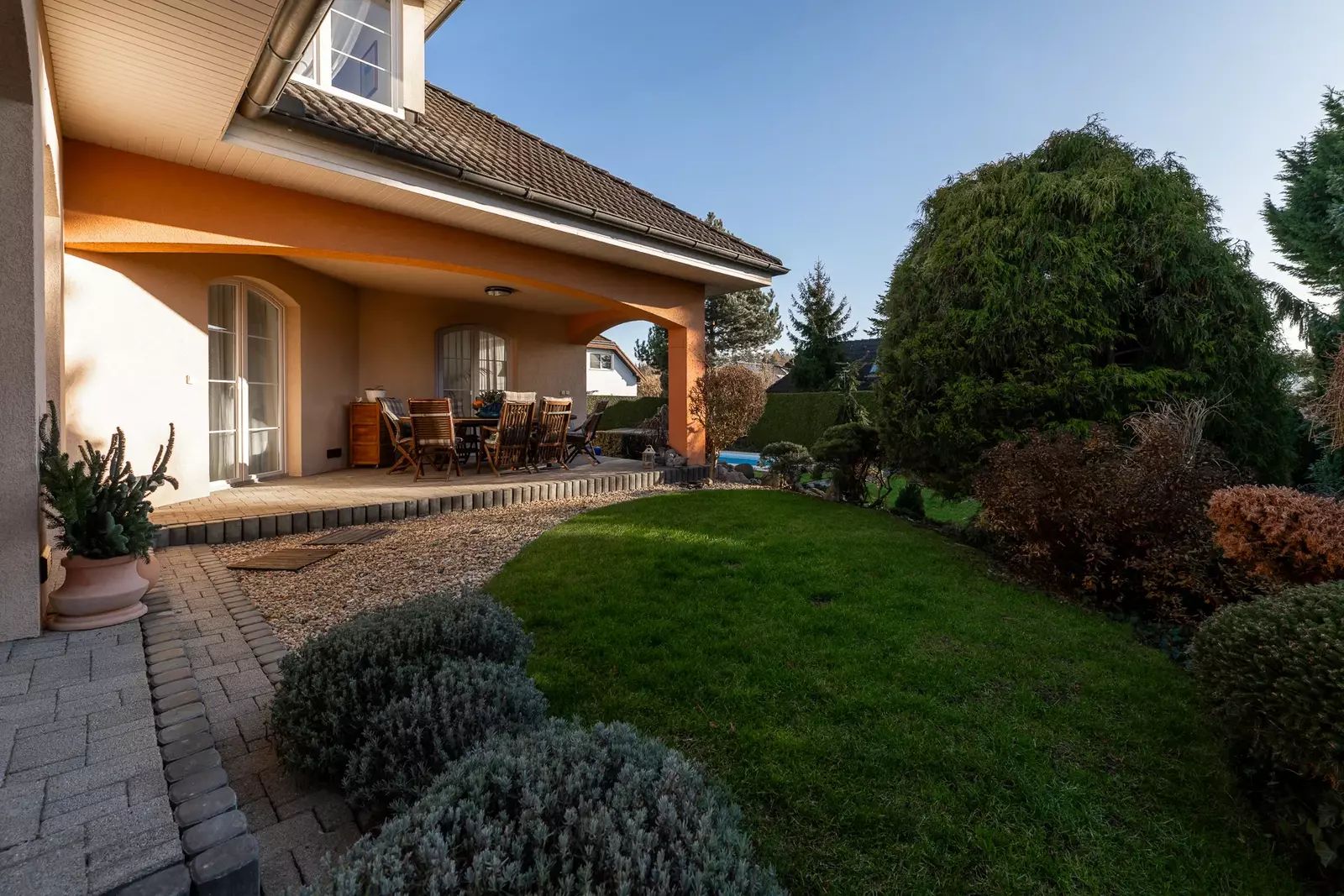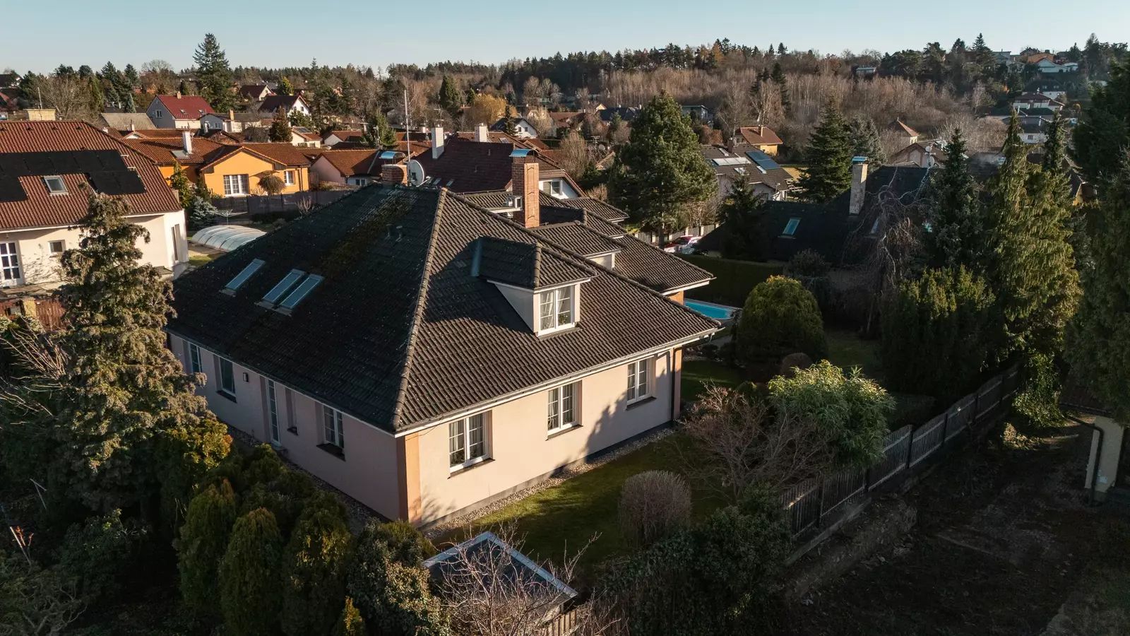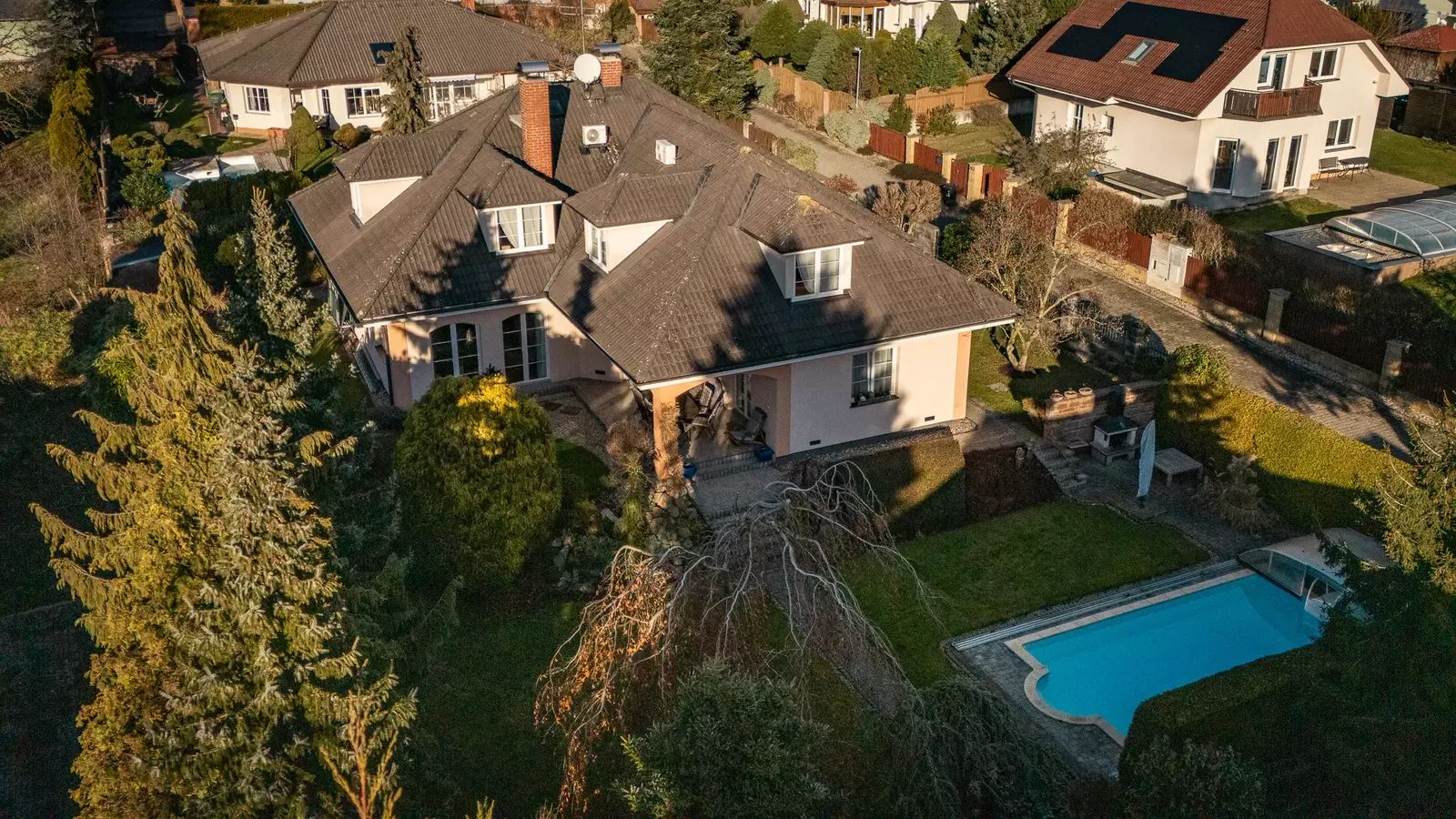 Tento reprezentativní dům 6+kk s užitnou plochou 363 m², dvojgaráží a překrásnou zahradou o rozloze 972 m² vás nadchne na první pohled.