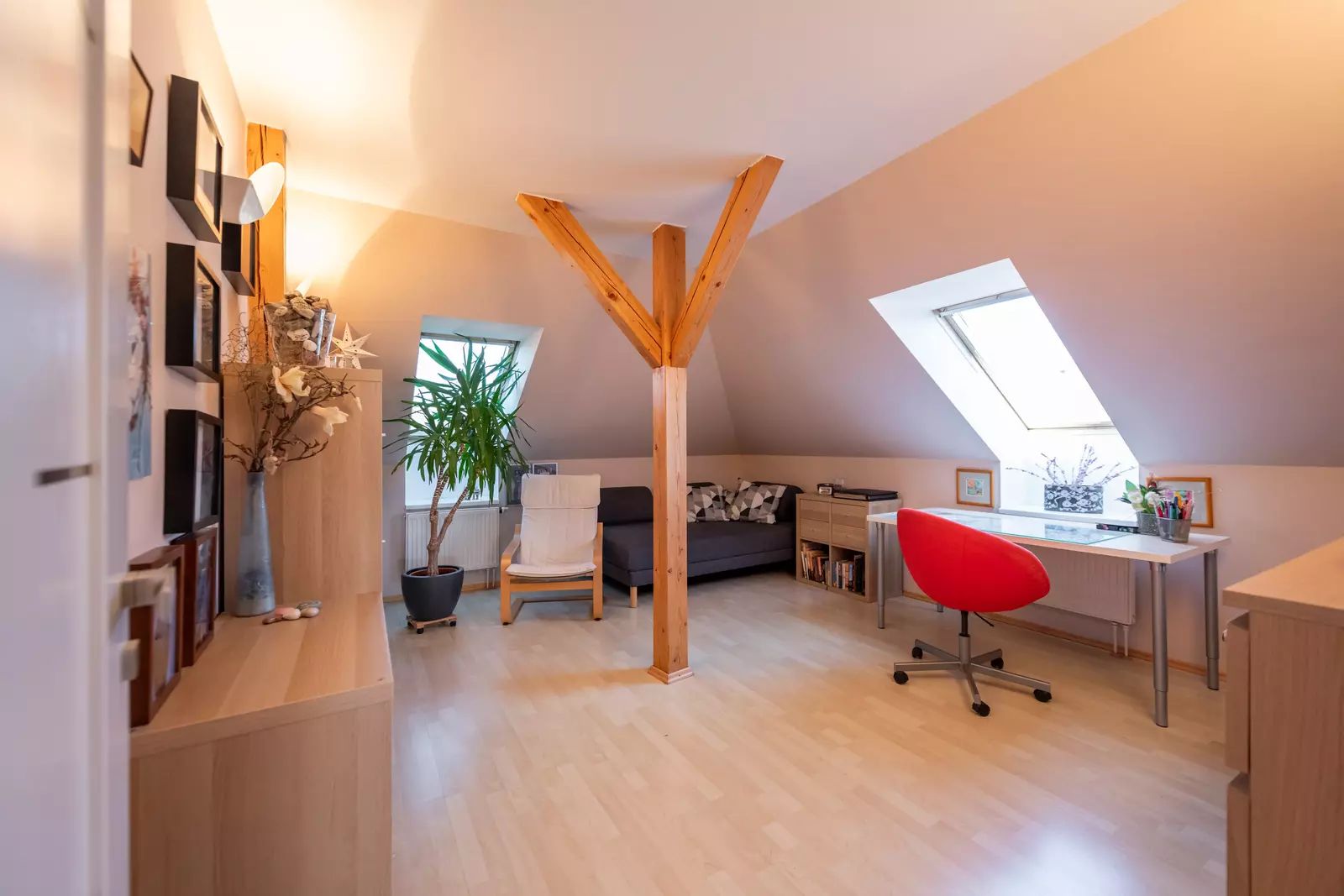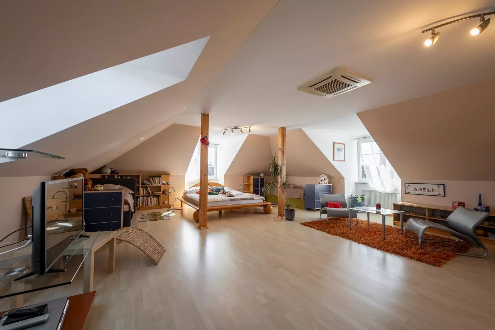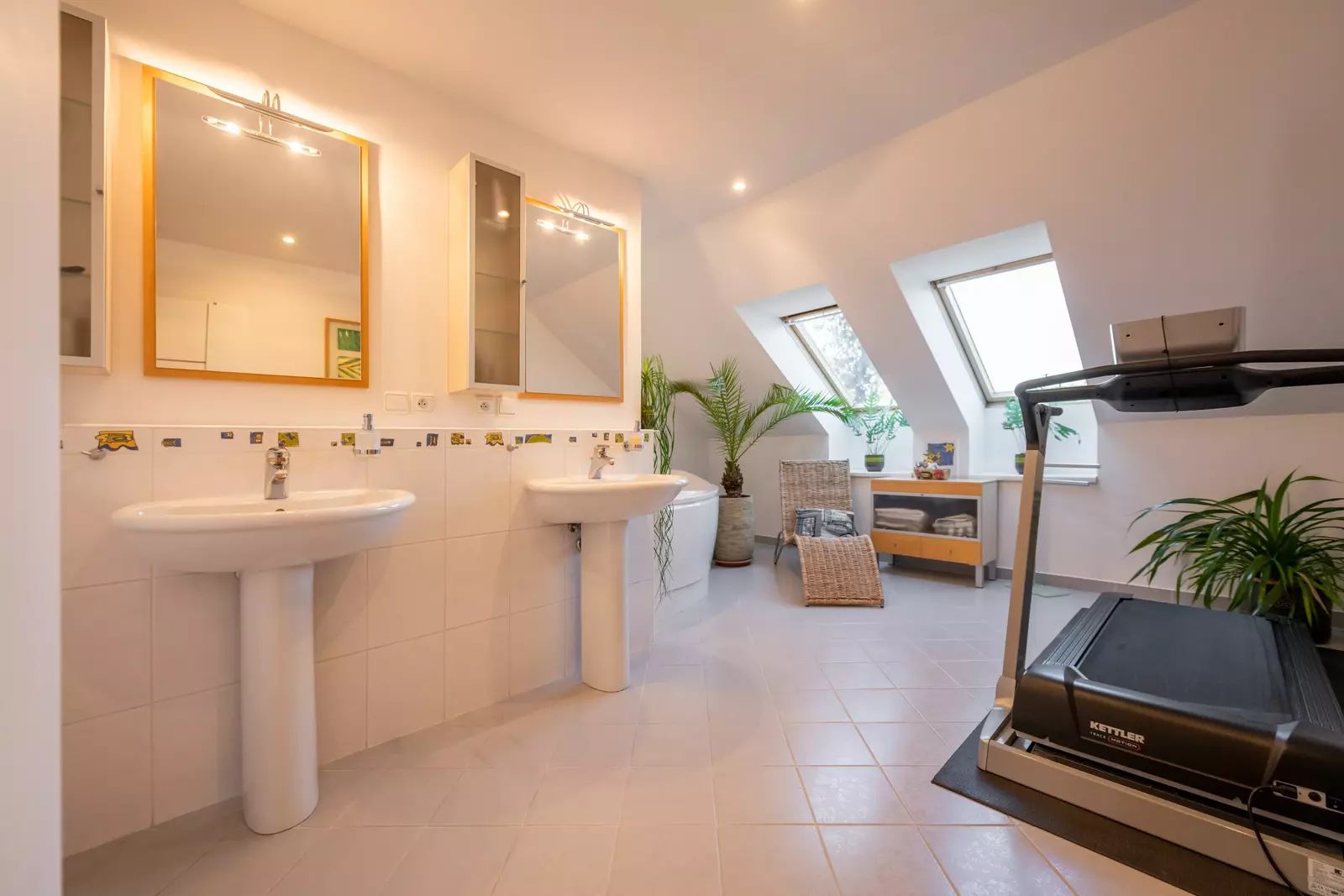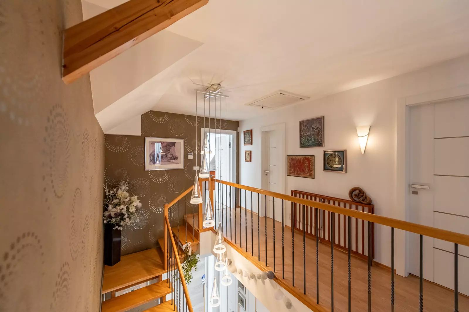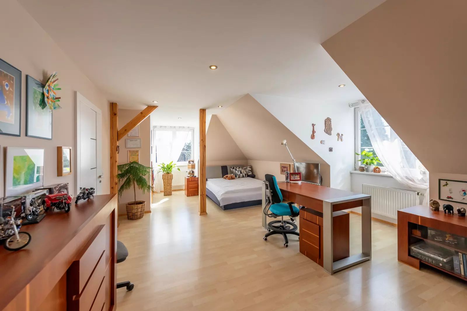 Patro: tři pokoje (jeden velmi prostorný), šatna, samostatné WC a velká koupelna s vanou a prostorem pro domácí fitness.