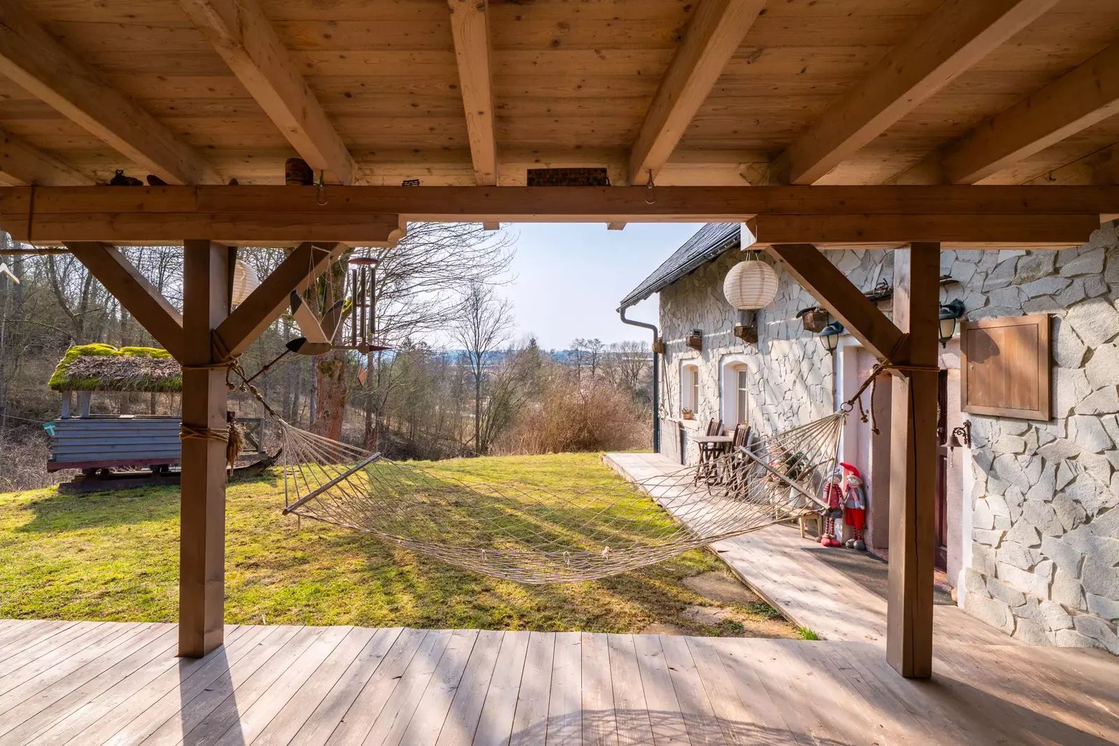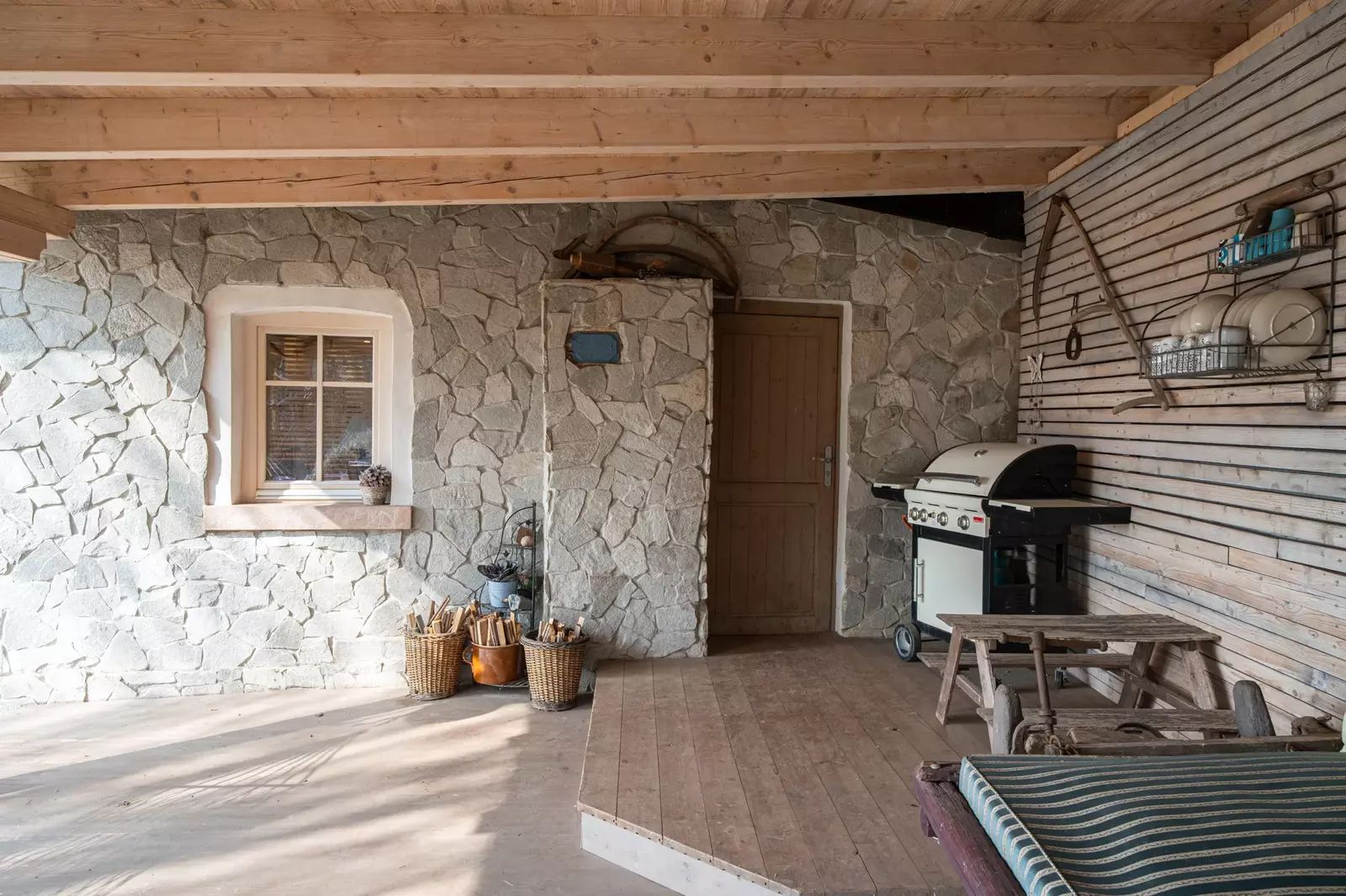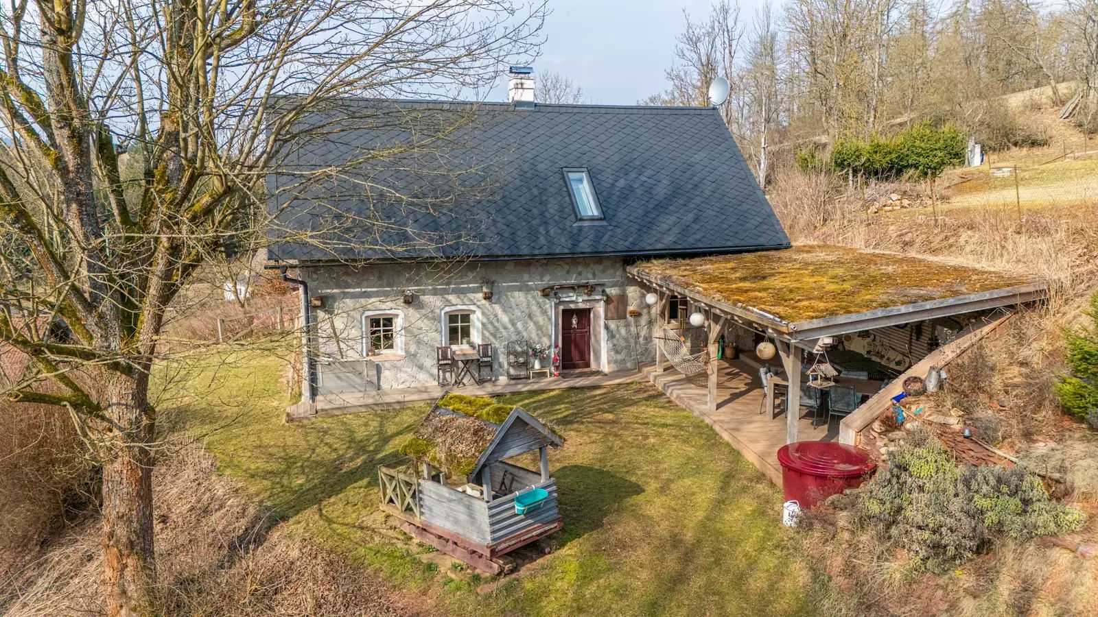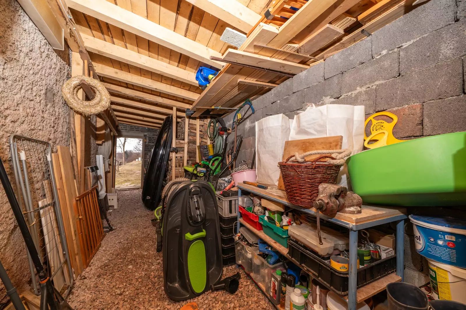 Součástí domu je také prostorná kolna pro uskladnění dřeva, nářadí nebo sportovního vybavení.