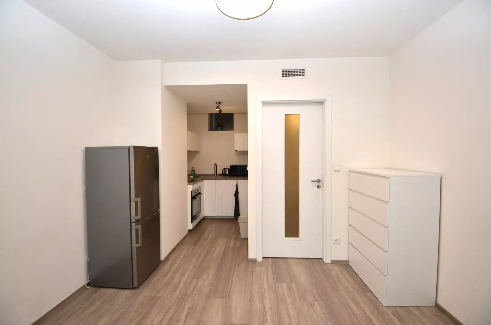 Pronájem bytu v krásné novostavbě rezidence Prachnerova. Dispozice bytu 1+kk, 33m2 s příjemnou a prostornou lodžii. Byt se skládá z předsíně, s šatní skříní, dále průchodem do obývacího pokoje, který je rozdělen na část kuchyňskou a obývací, vybavená kuchyňská linka (el. trouba, skl. deska, lednice s mrazákem, myčka nádobí, mikrovlná trouba, digestoř), v obývací části je rozkládací pohovka, komoda a tv., dále vstup na lodžii, orientovanou na jižní stranu, která nabízí možnost posezení. Koupelna se sprchovým koutem, toaletou a pračkou. K bytové jednotce patří sklep. Cena nájmu je 14000,-Kč + kompletní zálohy na služby a energie, včetně internetu a elektřiny 6000,-Kč měsíčně.