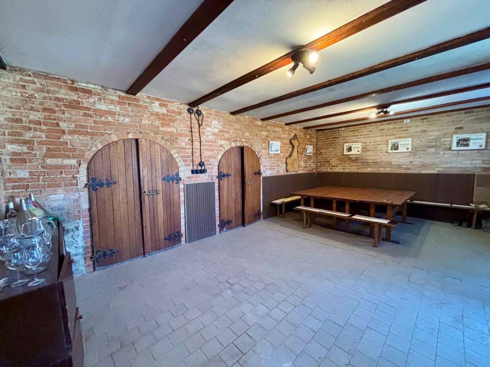 Reprezentativní prostor pro zpracování hroznů i posezení s přáteli či zákazníky. Ideální pro pořádání menších degustací a setkání.