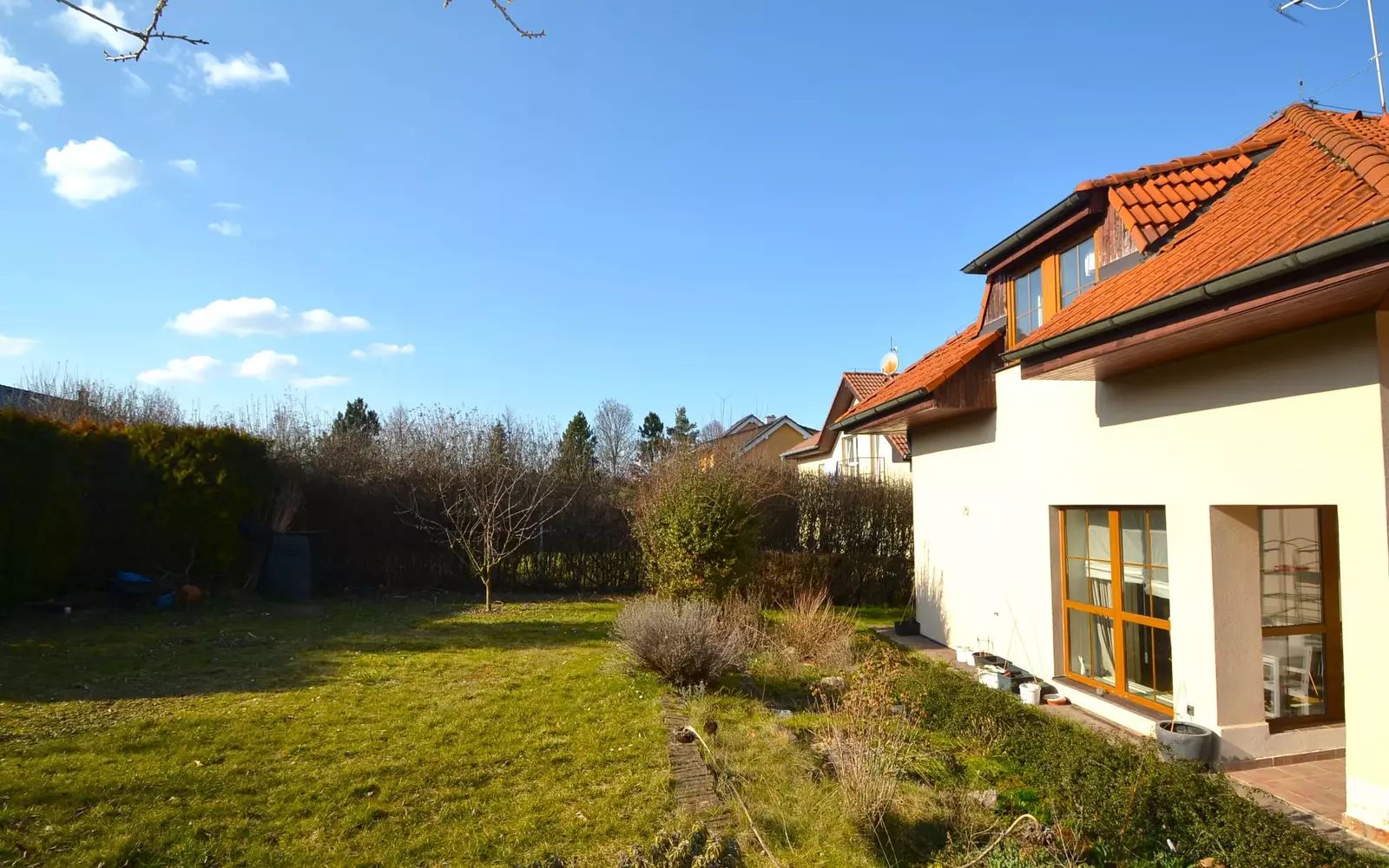 Pronajímaná část domu má vlastní samostatný vstup a předsíň, což zajišťuje dostatek soukromí. K užívání náleží také část zahrady, která bude rozdělena plotem na dvě poloviny. Druhá část domu má dispozici 2+kk s garáží a vlastním vstupem a je aktuálně obsazena nájemcem. Dům se nabízí vybavený dle fotografií, po dohodě je možné nábytek částečně nebo zcela odstranit.