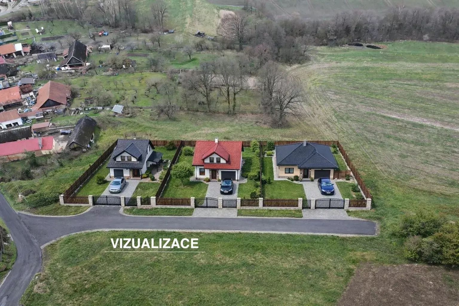 Na obou pozemcích lze ostavit 1–4 domy pro rodinné bydlení. Příklady jsou v přiložené vizualizaci.