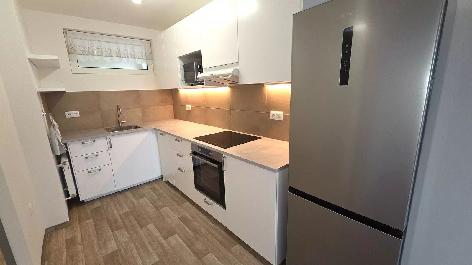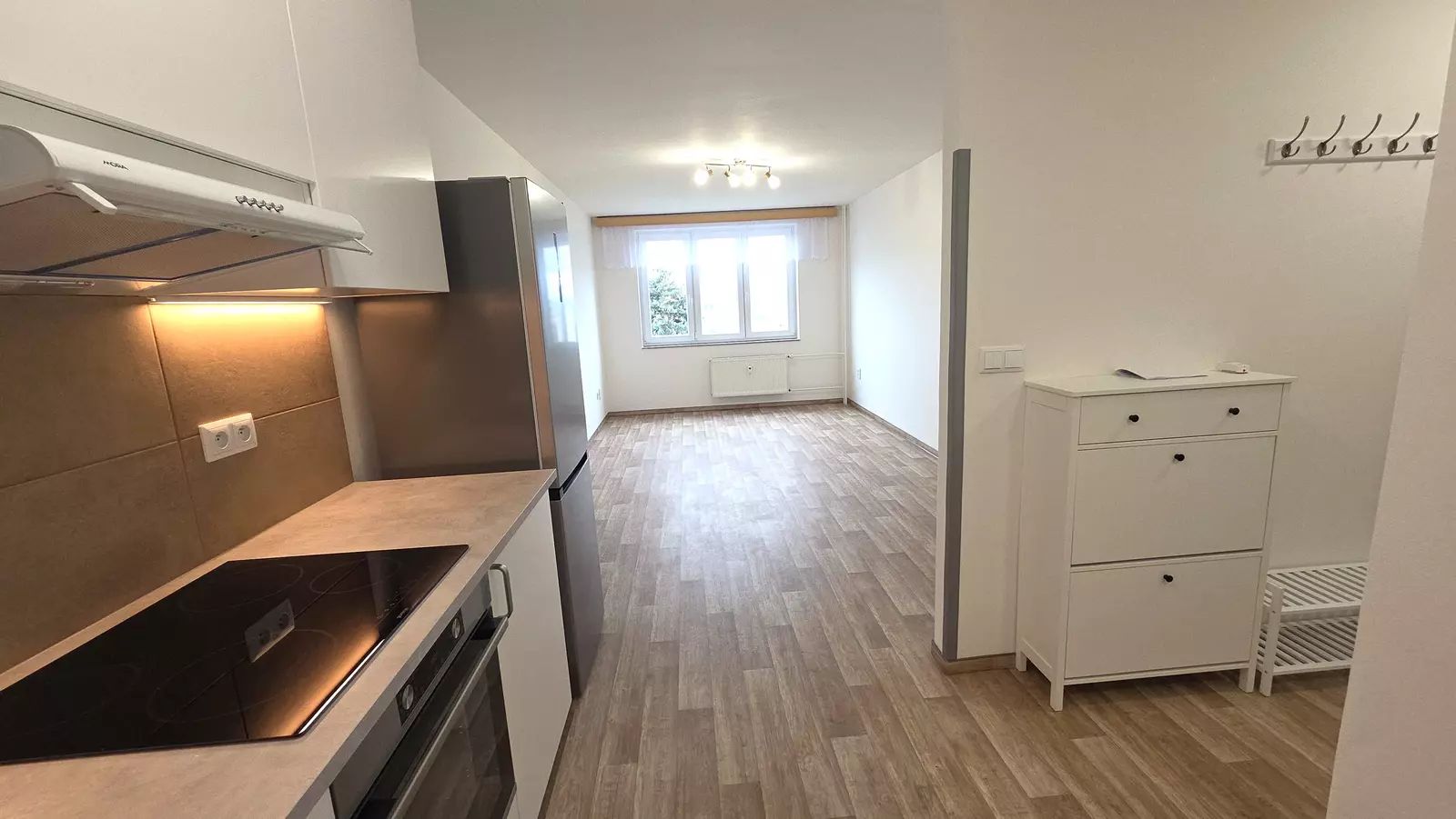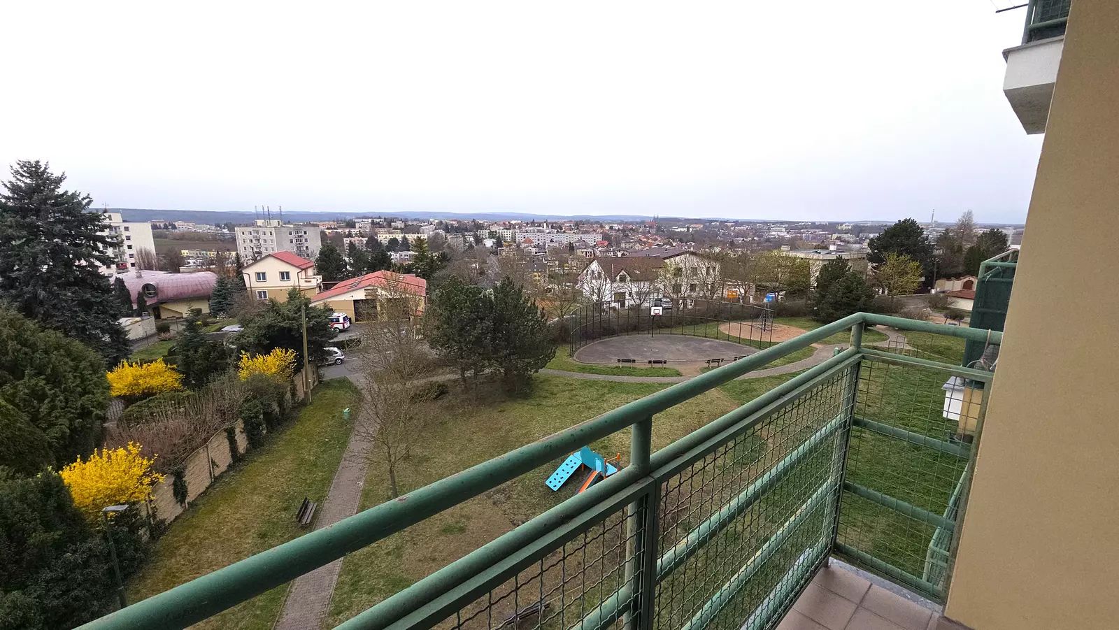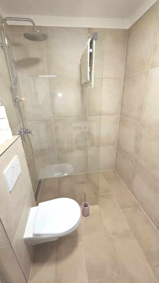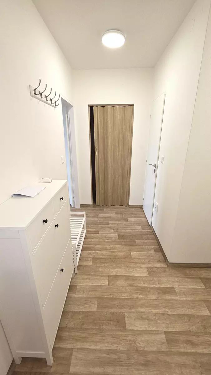 Byt je částečně zařízený a k dispozici jsou kvalitní elektrospotřebiče, včetně elektrického vařiče, samostatně stojící lednice, elektrické trouby, digestoře, pračky a myčky nádobí. Obývací pokoj je spojen s kuchyní, což vytváří příjemný a otevřený prostor pro každodenní život. Byt má balkon, který poskytuje krásný výhled na město a okolí, ideální pro relaxaci po náročném dni.