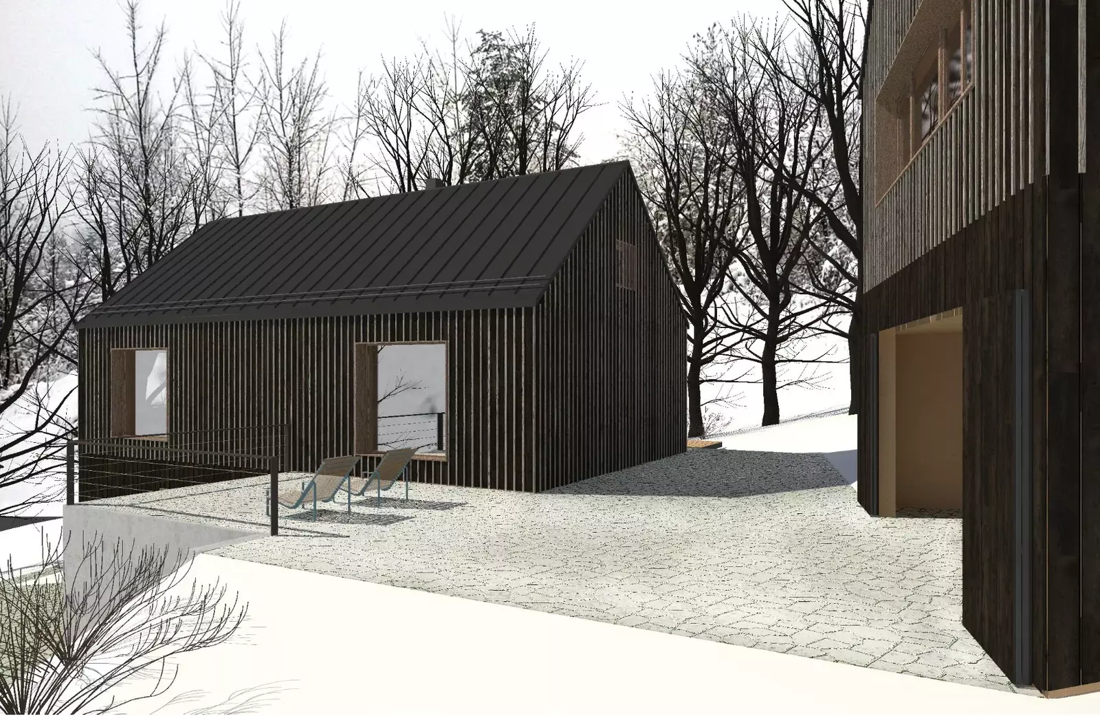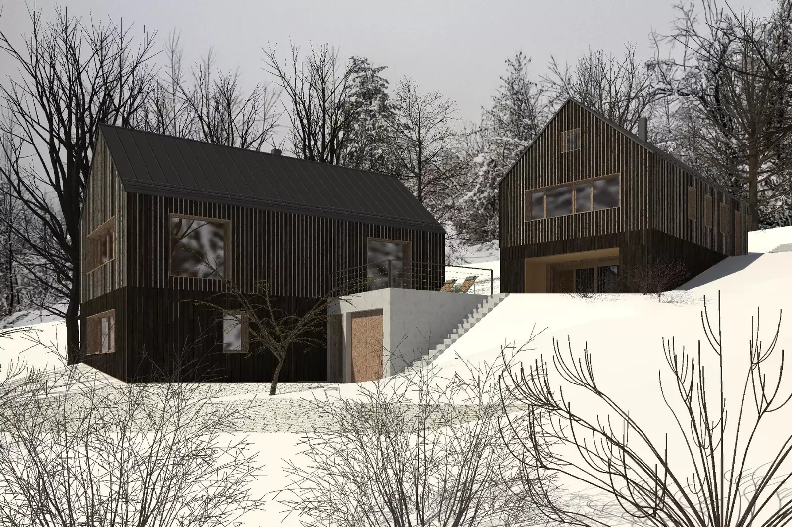 K pozemkům byla vytvořena architektonická studie renomované firmy Žárovka Architekti. Jedná se o studii dvou na sebe navazujících chalup. Celá studie je navržena v souladu s Územním plánem obce Deštné v Orlických horách. Jedná se o plochu SR – plochy smíšené obytné – rekreační. Nové chalupy byly navrženy tak, aby co nejlépe zapadly do krajinného rázu. Chalupy mohou být užívány buď zcela samostatně nebo i společně a zároveň se doplňovat.