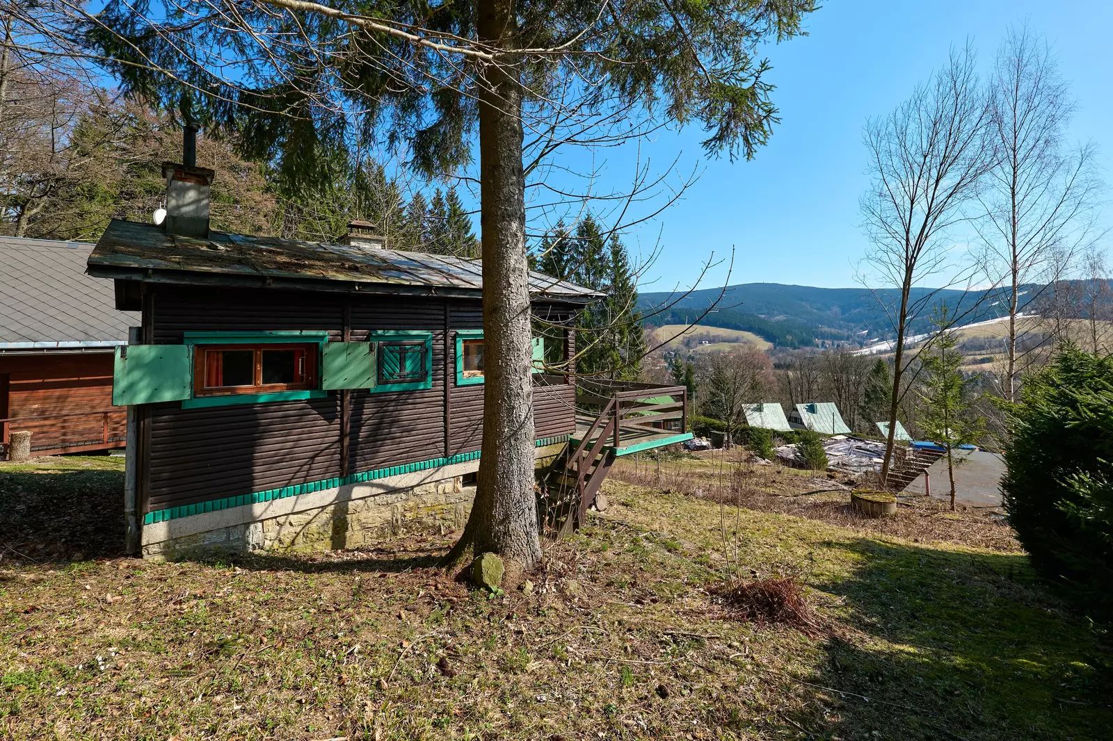 Součástí horního pozemku je stavba pro rodinou rekreaci s číslem evidenčním. Chalupa je obyvatelná, ale spíše je určena k rekonstrukci nebo demolici.
