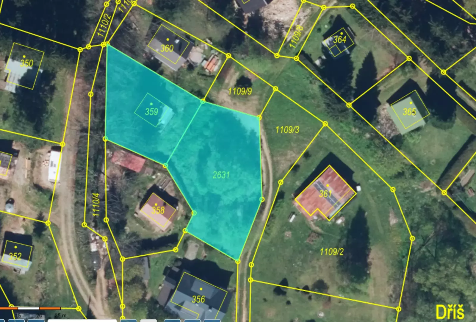 Spodní pozemek o velikosti 568 m2