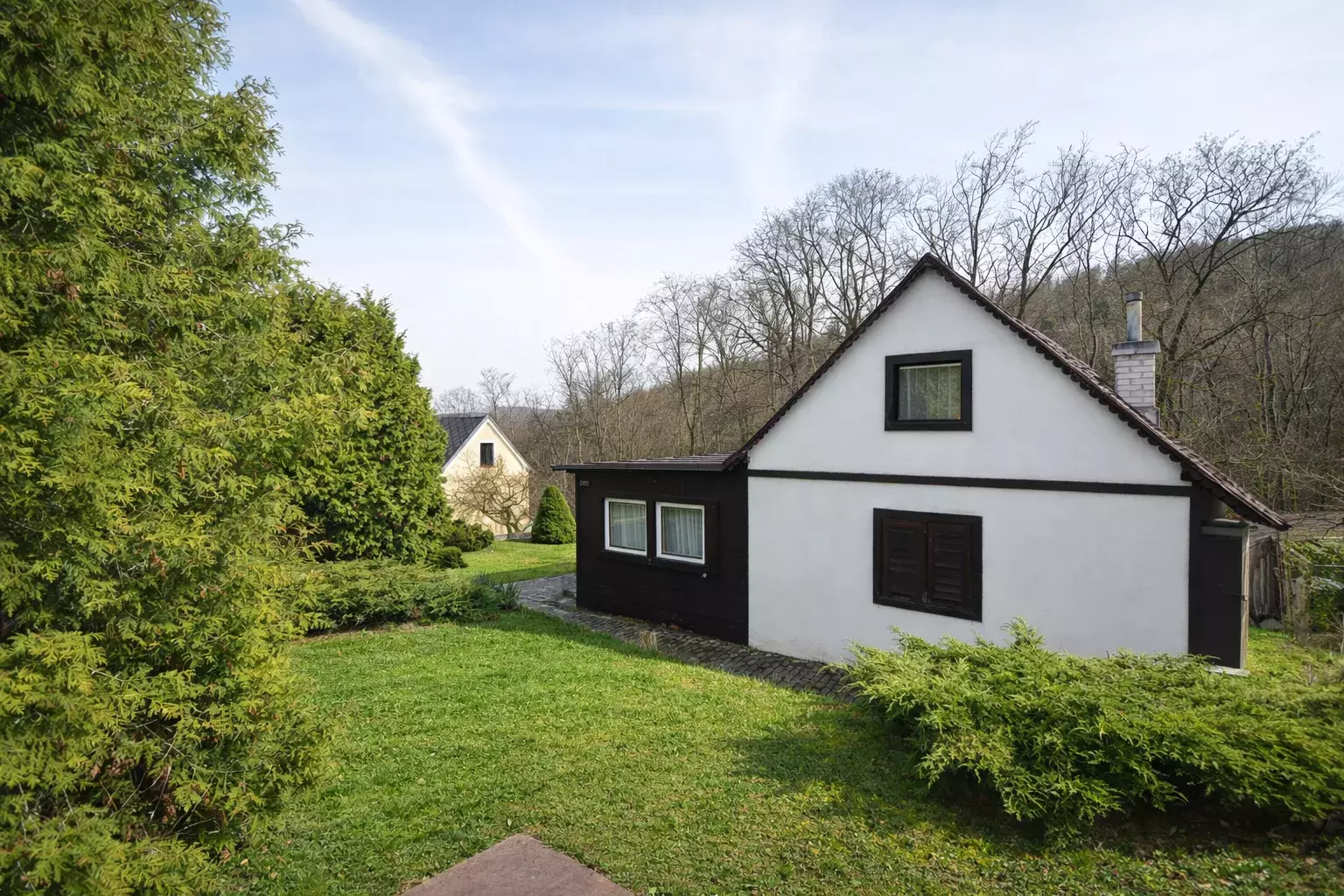 Nabízíme k prodeji rekreační chatu dispozice 4+kk, s užitnou plochou cca 55 m², situovanou v klidné a vyhledávané lokalitě Záhrabská, v obci Svatý Jan pod Skalou. Původní chata byla postavena přibližně v padesátých letech, v běžném provedení smíšená konstrukce (původní podezdívka a navazující dřevěná část se sedlovou střechou). Dispozice zahrnuje, prostorné zádveří (verandu), obytnou část s kuchyňským koutem, kde jsou krbová kamna, koupelnu s el. bojlerem, wc a dvě ložnice v podkroví.