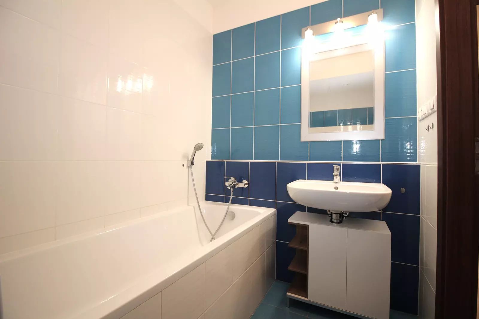 Dispozice bytu: Z chodby se vstupuje do světlého obývacího pokoje s kuchyňským koutem a vstupem na prostornou lodžii vybavenou screenovou roletou proti slunci. Z chodby je také přístup do ložnice, koupelny s vanou a samostatného WC.