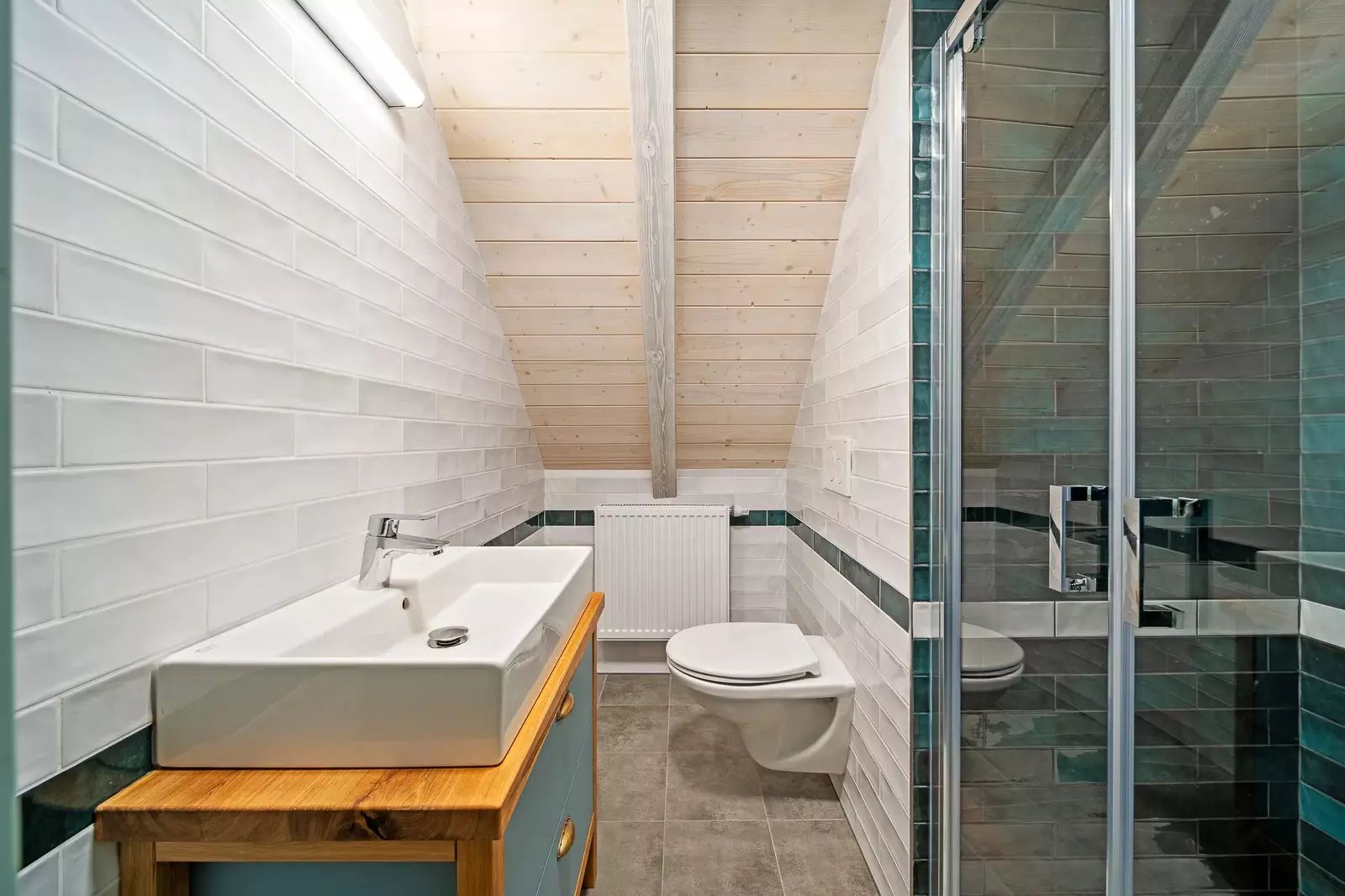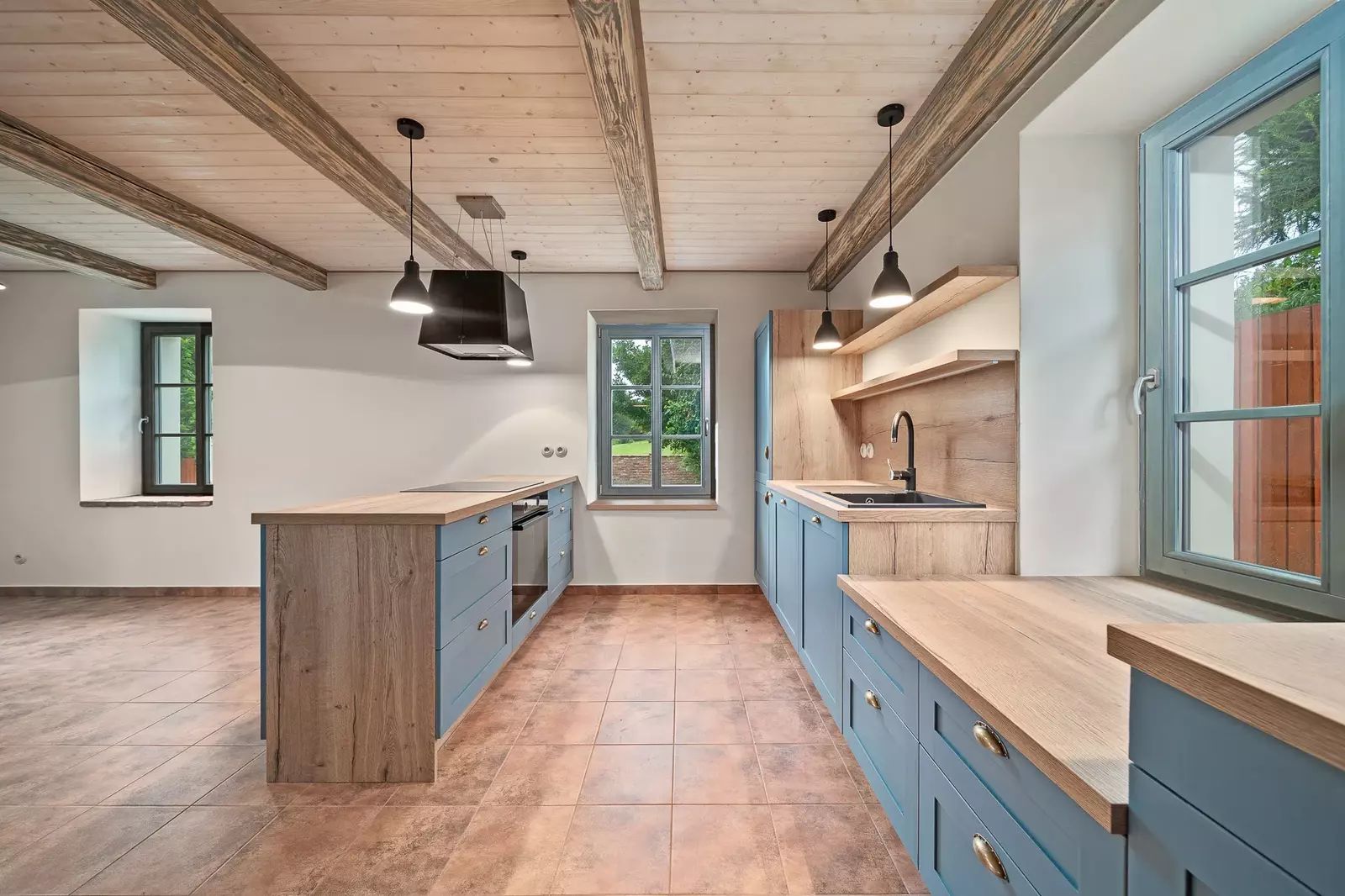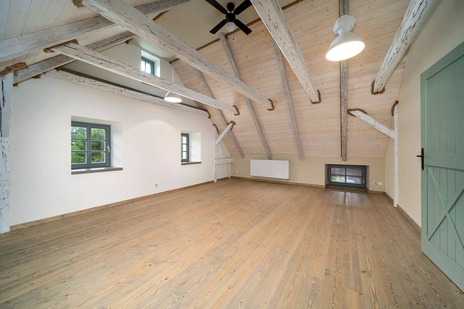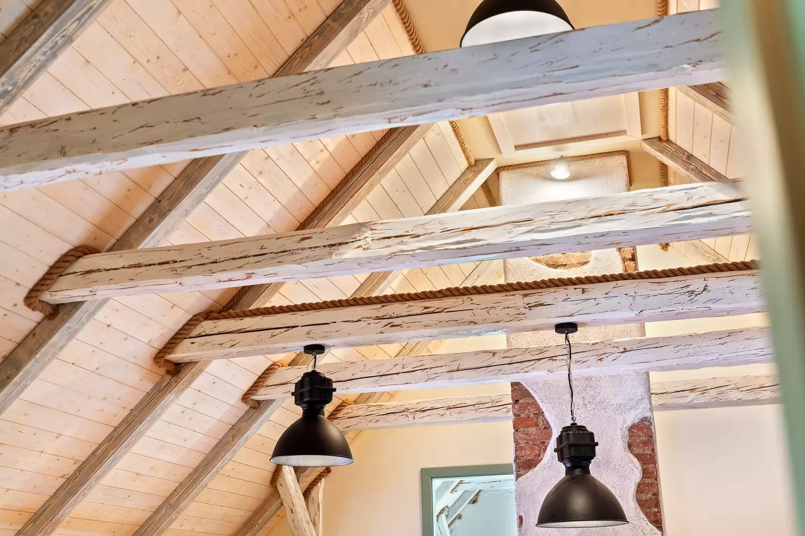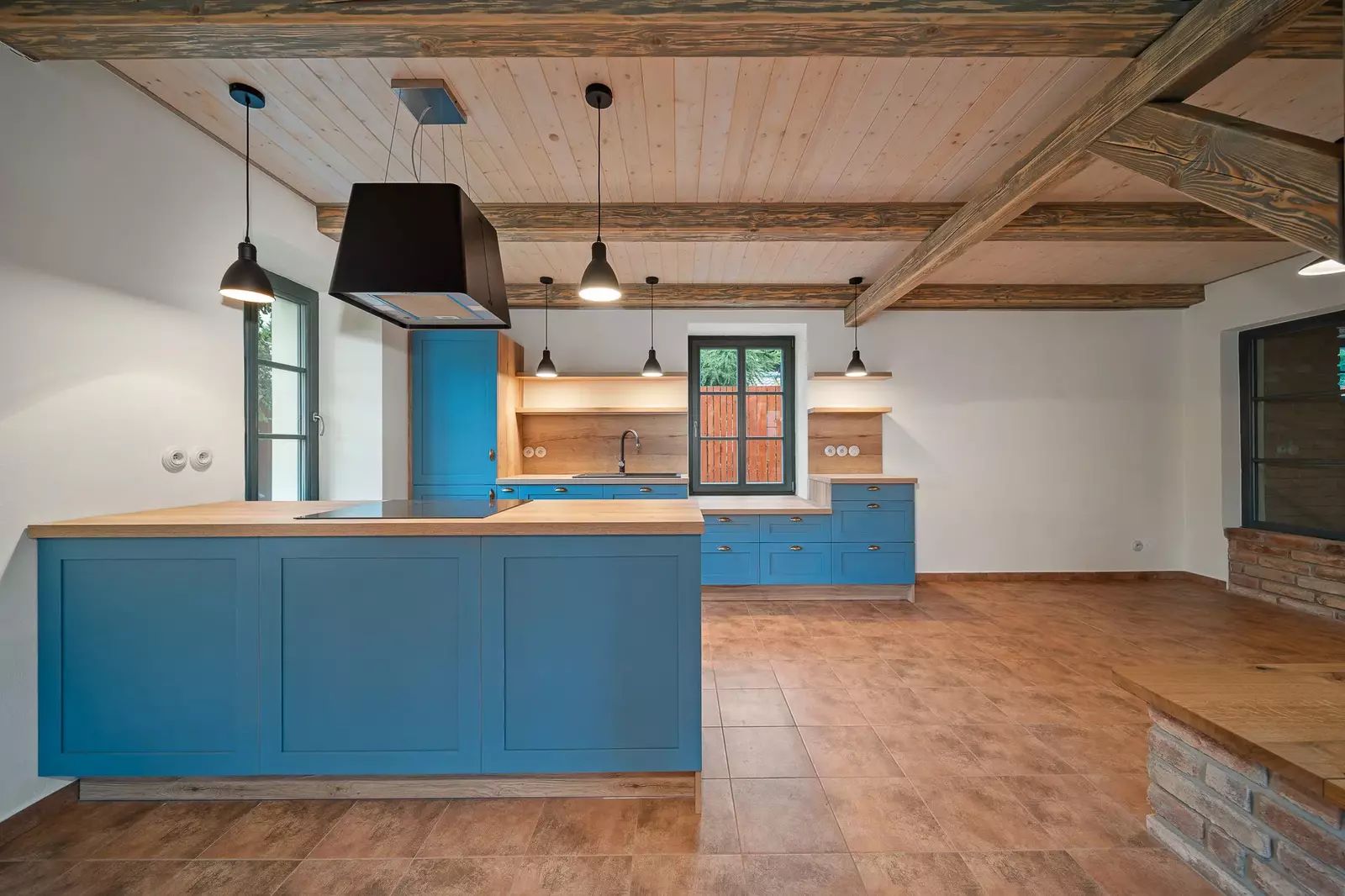V patře jsou dva velkorysé pokoje s otevřeným podkrovím, které nabízí další možnosti spaní či úložného prostoru.