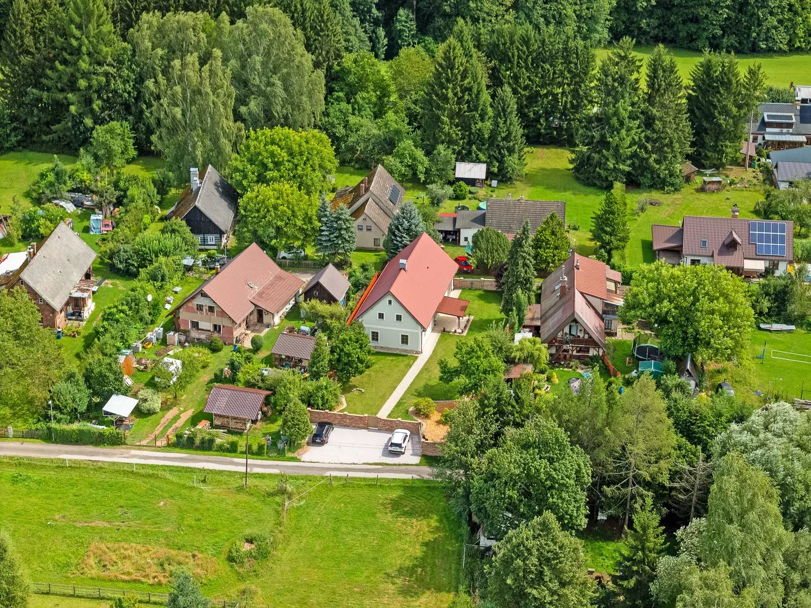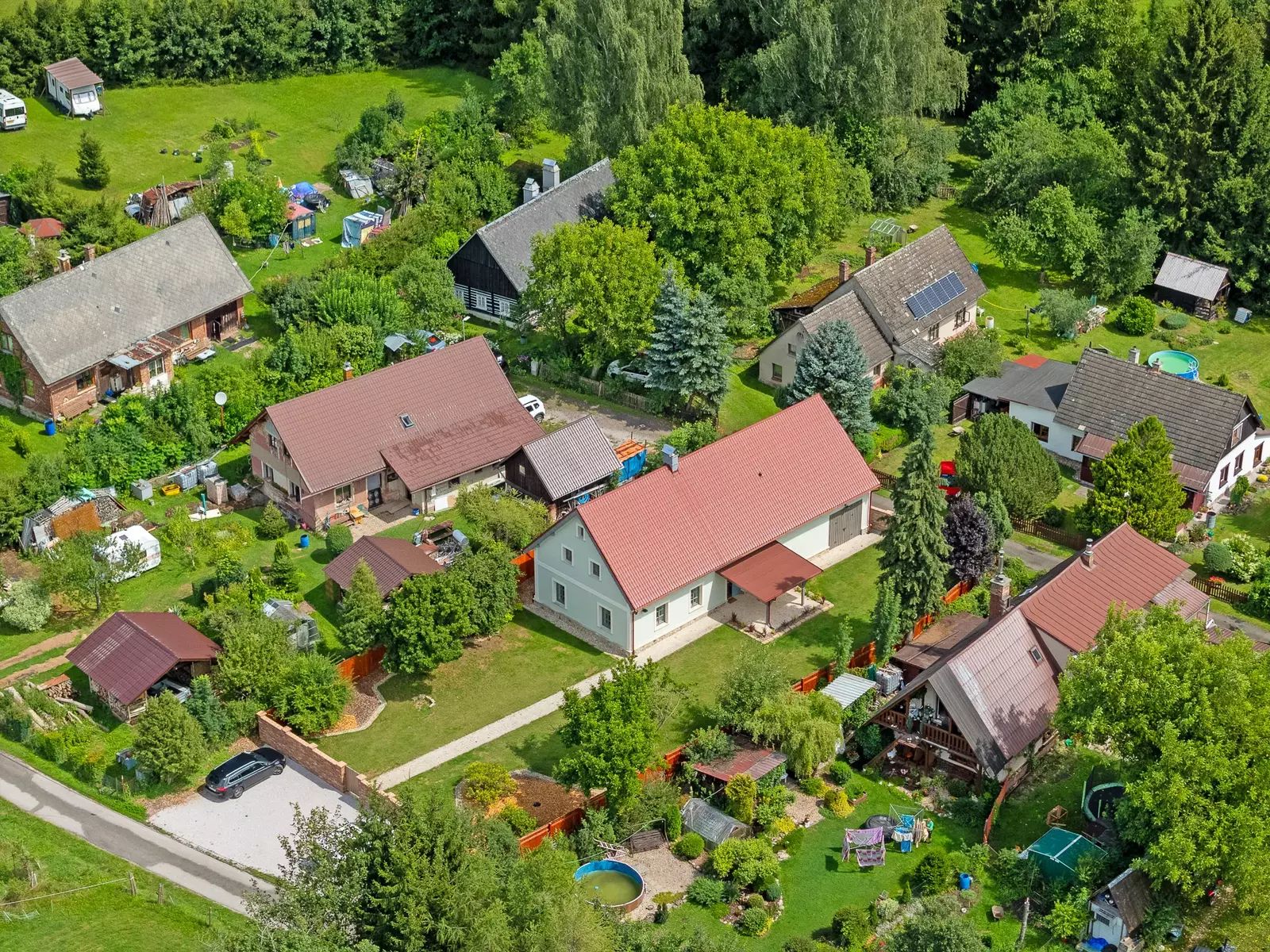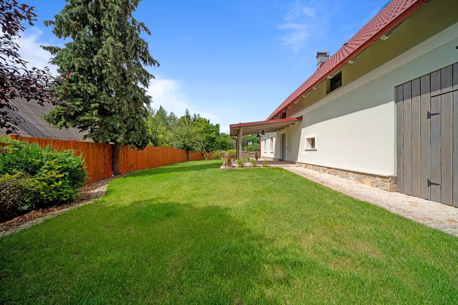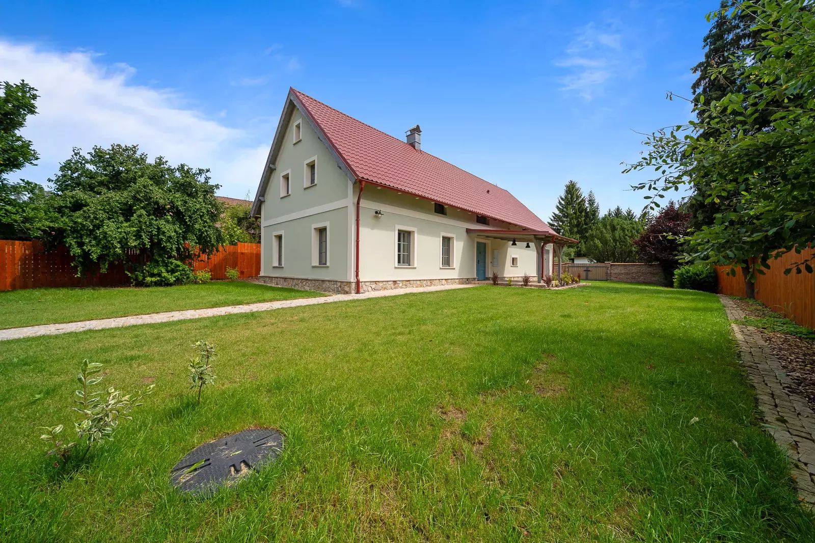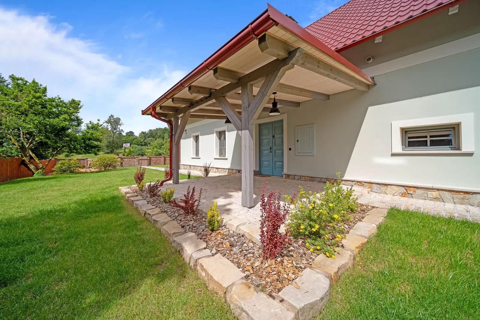 Nemovitost zaujme nejen kvalitním zpracováním interiéru, ale i upraveným exteriérem, včetně oplocení a parkovacích ploch.