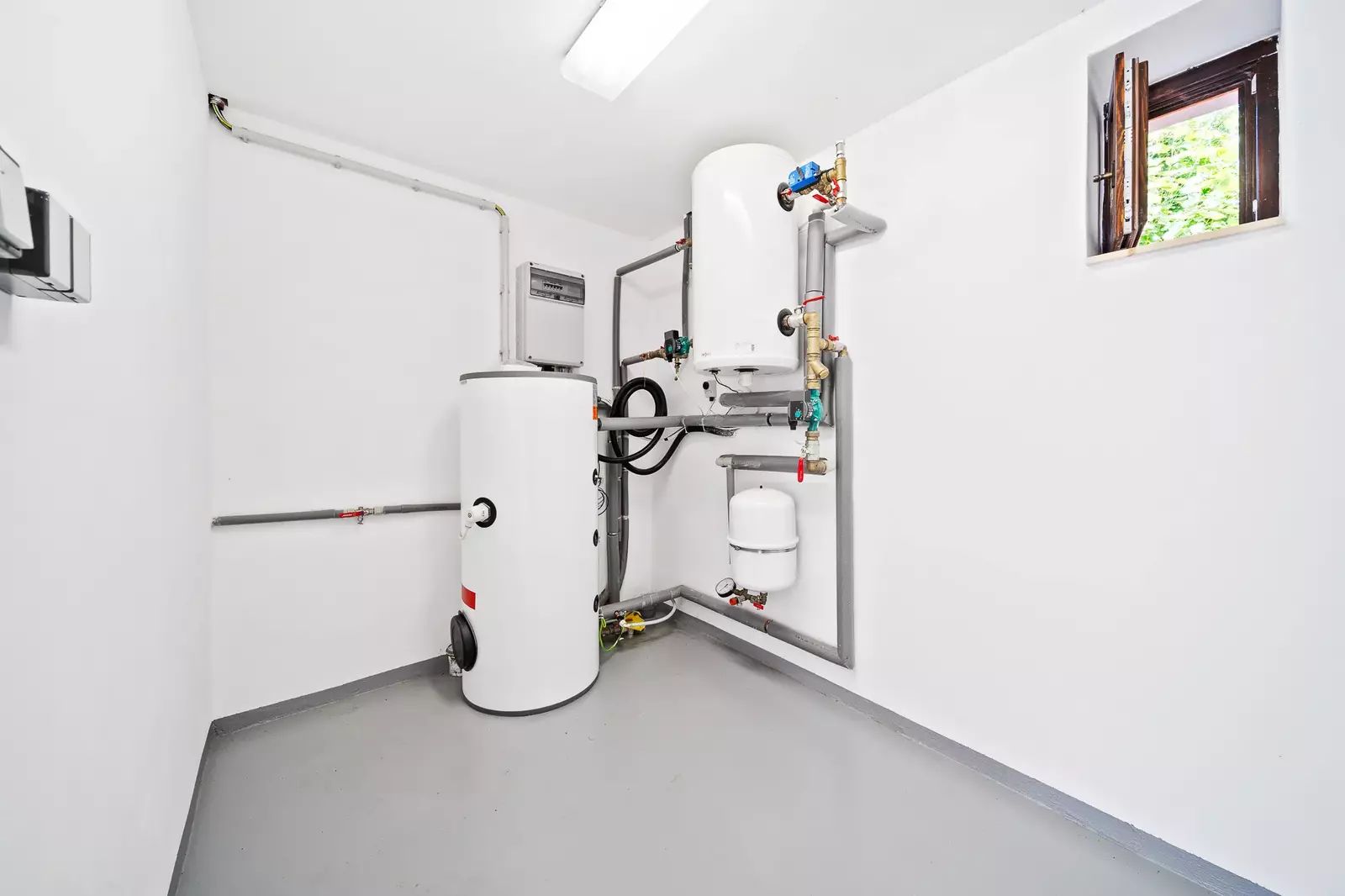 Dům je napojen na elektřinu a vodu. Vytápění zajišťuje tepelné čerpadlo v kombinaci s kachlovými kamny. Odpad je řešen vlastní čističkou odpadních vod.