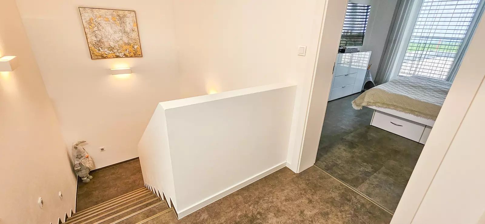 Zděný dům je postaven výhradně z kvalitních materiálů a moderních technologií. Zateplení o síle 20 cm, trojskla, podlahové vytápění s tepelným čerpadlem Panasonic, rozvody zabezpečovacího systému, elektrické předokenní žaluzie či bezfalcové dveře včetně magnetických zámků jsou samozřejmostí.