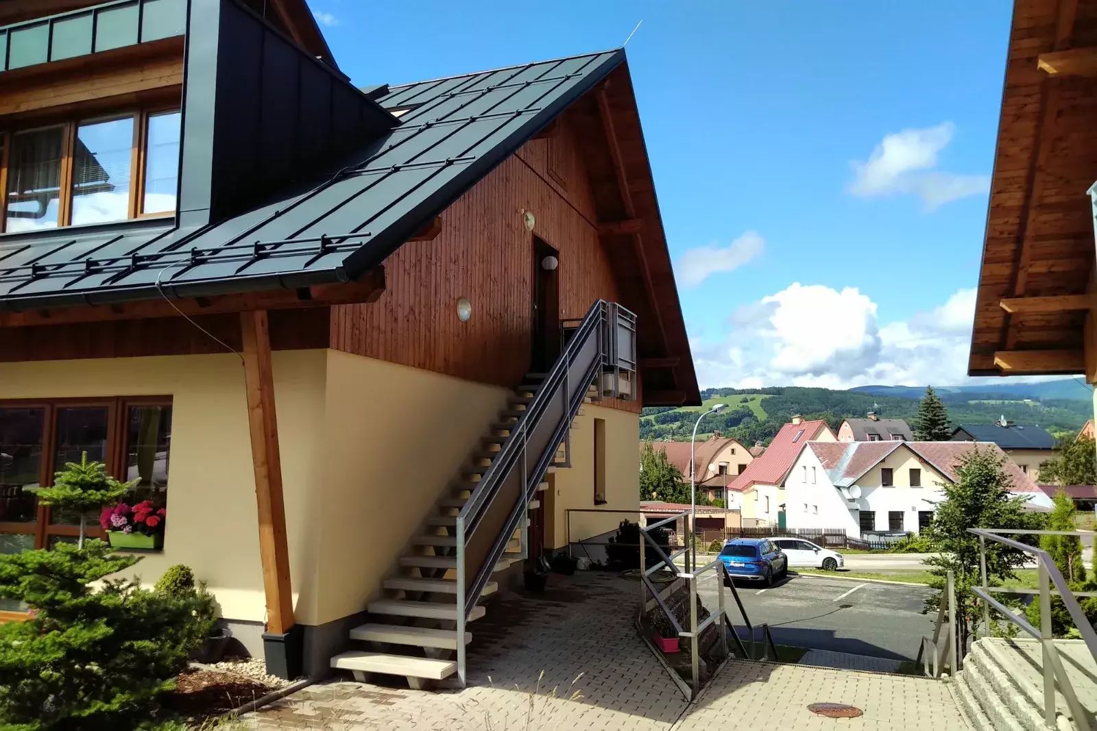 Umístění bytu v městské části zvané „Liščí kopec“ nabízí životní prostředí s výbornou dostupností služeb, včetně mateřské školy, základní školy, restaurací, a především sportovních zařízení - lyžařský areál Vejsplachy - v zimě s rolbovanou stopou (10 min. pěšky), pro sjezdové lyžování Ski areál Kněžický Vrch či Herlíkovice (4-5 min. autem), zimní stadion-bruslení (5 min. pěšky), nový plavecký bazén (7 min. pěšky), fotbalový stadión (10 min. pěšky) a případně další sportovní aktivity. Dopravní obslužnost v oblasti zajistí jak vlastní automobil, tak místní autobusová doprava (u apartmánu BUS zastávka do Ski Herlíkovice). Prezentovaná nemovitost je ideální volbou pro ty, kteří hledají kvalitní bydlení s kompletním vybavením a ve vyhledávané lokalitě.