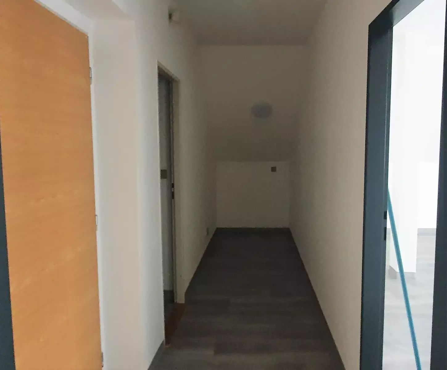 Kancelář se nachází v 1. patře dvoupodlažní budovy s komerčními prostory. K dispozici je sdílená koupelna s WC a kuchyňka, které jsou společné s vedlejší kanceláří. Výhodou jsou také praktické úložné prostory přímo v kanceláři.
