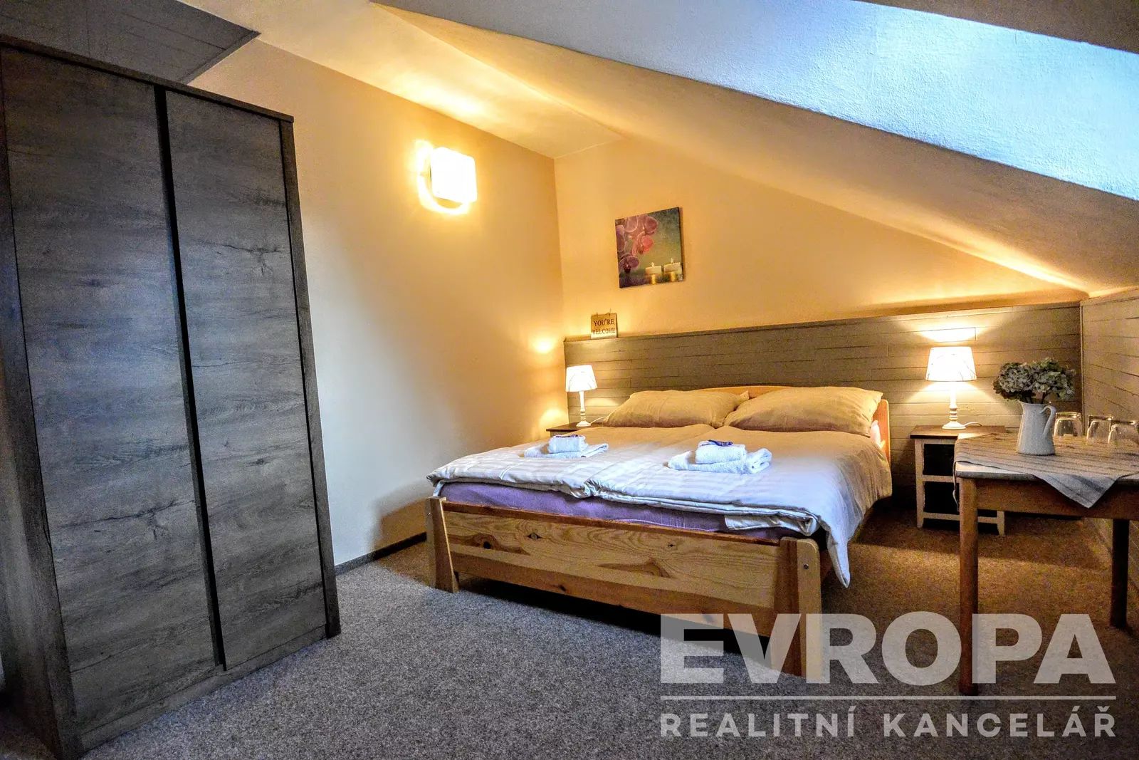 V prvním patře a v podkroví se nachází 21 dvou až čtyřlůžkových pokojů, každý s vlastním soc. zařízením (sprch. kout, WC, umyvadlo) s kapacitou pro 50 hostů, sauna a apartmán 4+kk pro majitele, či správce o velikosti 95 m2.