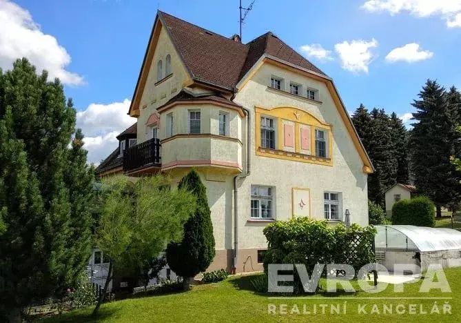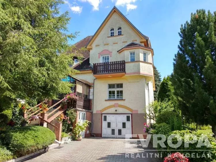Na základě výhradního zastoupení nabízíme k prodeji krásnou vilu z třicátých let s obytnou plochou o výměře 166 m2. Vila nabízí, vzhledem k jejímu umístění v klidné části města, pohodové bydlení. Ve vile jsou dva byty o velikosti 2+1 a 3+kk. Dispozice vily: v suterénu se nachází vytápěná dílna, tzv. černá kuchyň, garáž pro dva osobní automobily a WC; první nadzemní podlaží kuchyň propojená s obývacím pokojem, ložnice, koupelna s vanou, sprchovým koutem a WC; druhé nadzemní podlaží je obývací pokoj s možností kuchyňského koutu, dva pokoje, koupelna s vanou, sprchovým koutem a WC. Z druhého podlaží je vstup do pěkného půdního prostoru, který vybízí k realizaci např. ateliéru. Dům má zateplenou fasádu. Vytápění je zajištěno přímotopy a krbovými kamny. Přípojky vody, kanalizace a plynu jsou na hraně místní komunikace. Součástí domu je i vyhřívaný bazén a udržovaná zahrada. Výhodou je i dobrá dojezdová vzdálenost do Liberce a České Lípy. V dojezdové vzdálenosti od domu se nachází 18ti jamkové golfové hřiště a zábavný areál Malevil. U této nemovitosti není ke dni zveřejnění inzerce zpracovaný energetický štítek, proto je nemovitost inzerována v energetické třídě G. Doporučujeme prohlídku.