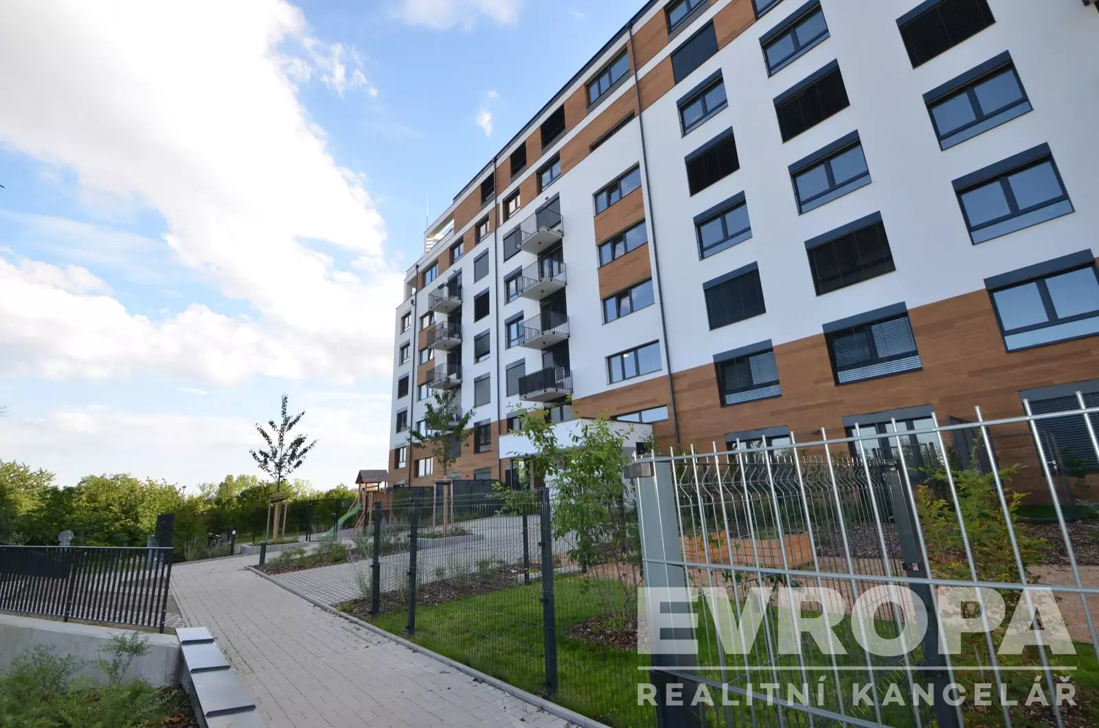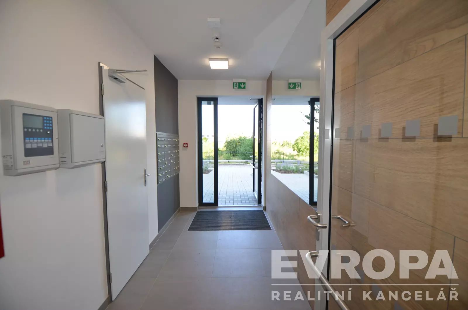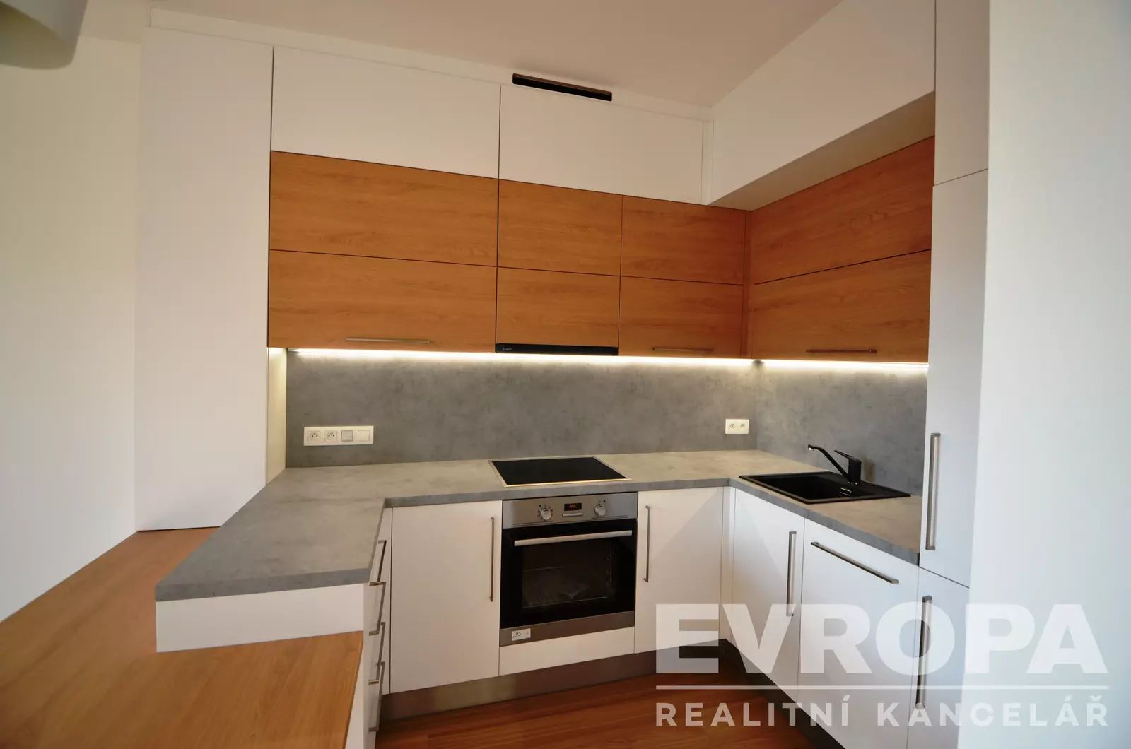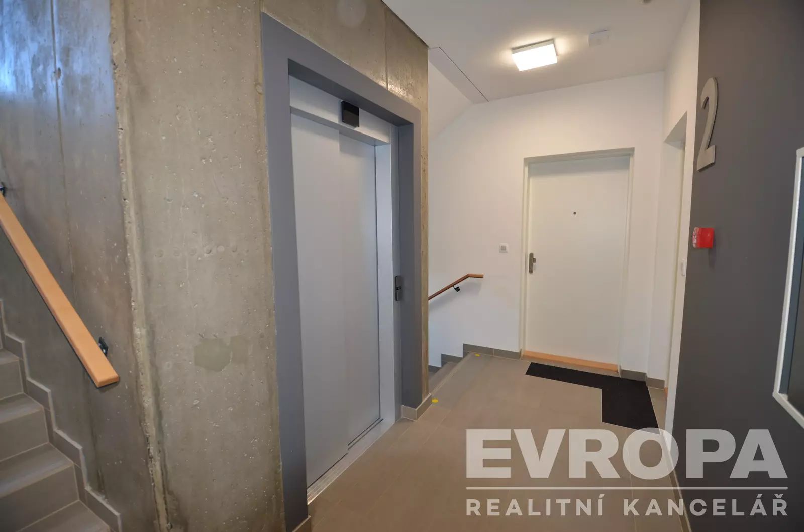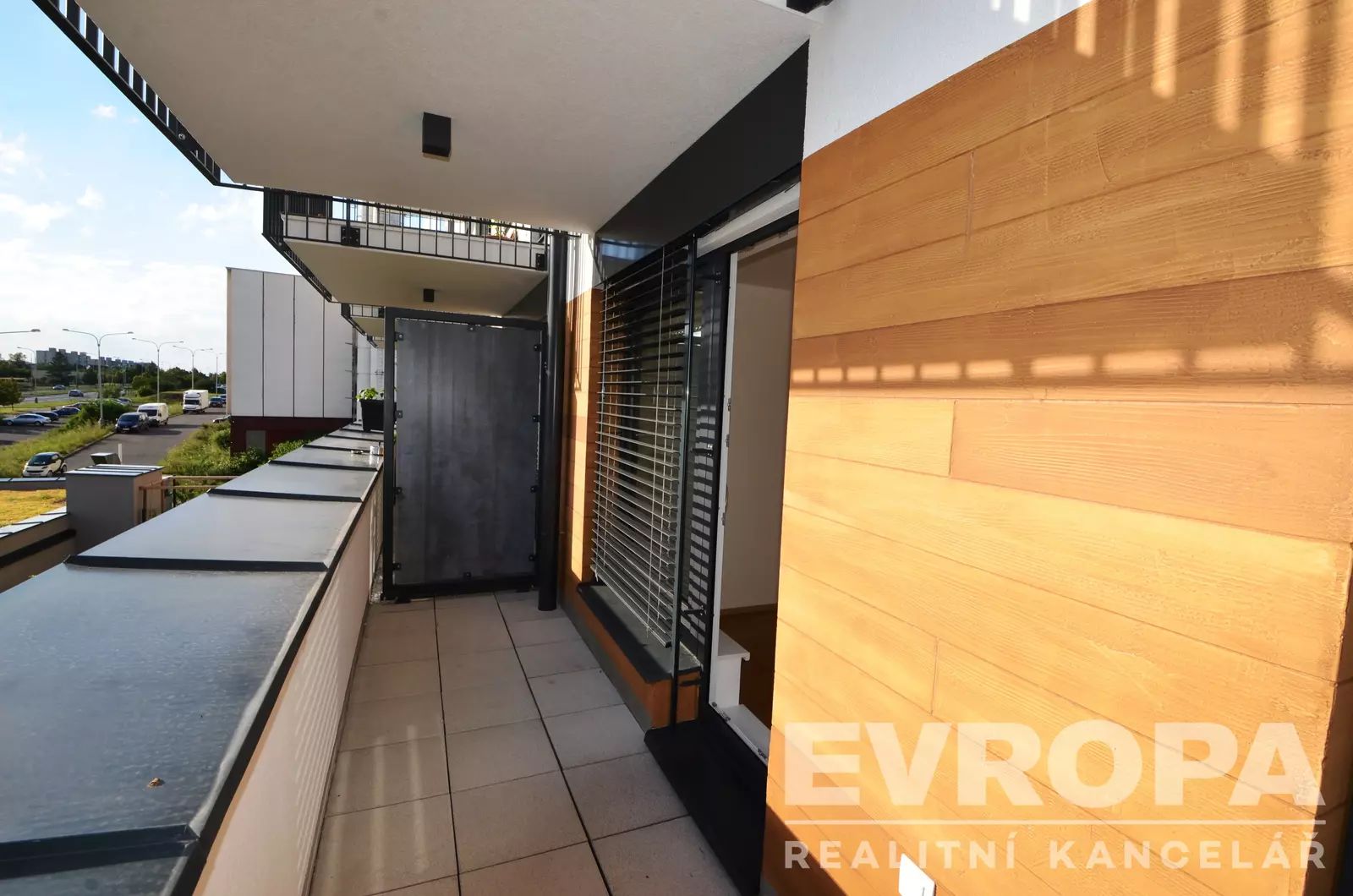 Pronájem bytu 2+kk s podlahovou plochou 50m2, balkonem 5m2 a sklepem 2m2 v osobním vlastnictví ve 4.patře sedmipatrového pasivního domu s výtahem. Dispozice bytu je řešena vstupem do předsíně (chodby), která disponuje prostornou na míru vestavěnou skříní, vlevo se vstupem do koupelny s podlahovým topením, sprchovým koutem a toaletou. Dále vstup do světlého obývacího pokoje s kuchyňským koutem a vstupem na prostornou terasu. Součástí moderní linky je sklokeramická deska, horkovz. trouba, lednice, mrazák a myčka. Z obývacího pokoje vlevo vstup opět do světlého pokoje (ložnice) s praktickou velkou šatní skříní. Izolační trojskla oken v ložnici a obývacím pokoji jsou směrována na jihozápad a osazena elektrickými venkovními žaluziemi. Byt je vybaven moderními materiály, dřevěné podlahy, koupelna s předsíní dlažba.