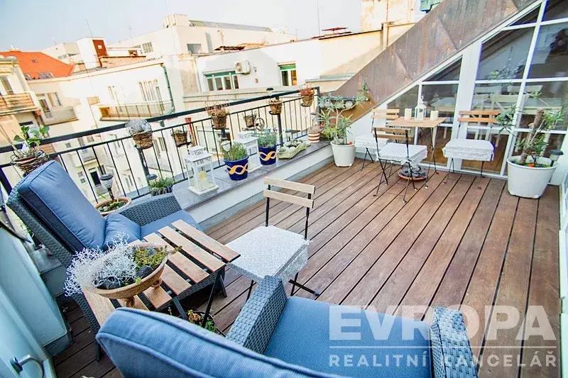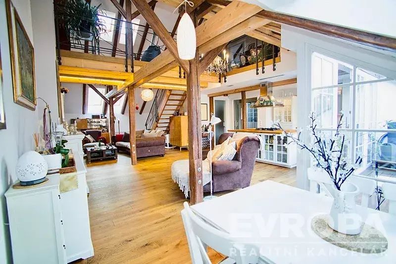Chcete luxusní bydlení v centru a přitom v soukromí , místo pro rodinu, relaxaci a romantiku tento designový a přitom velmi praktický mezonetový byt s terasou je schopen vše nabídnout.