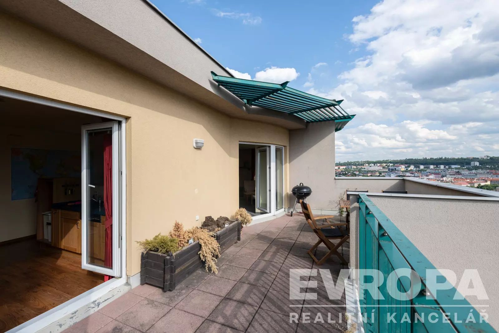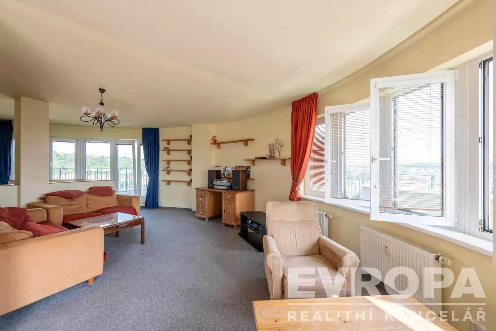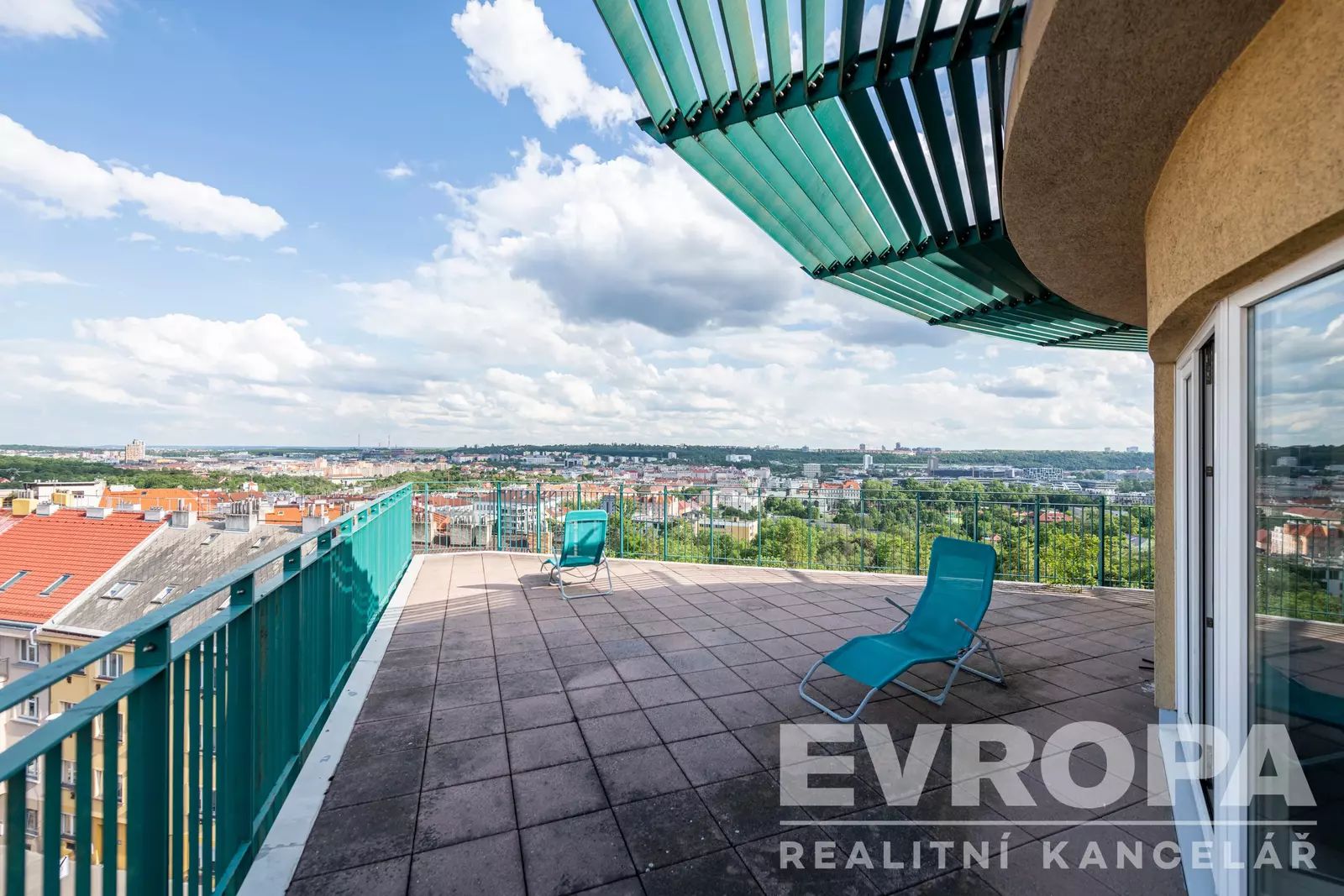 Pronájem prémiového dvoupodlažního bytu 6 kk 204m2 s výhledem na celou Prahu. Terasy 85m2.