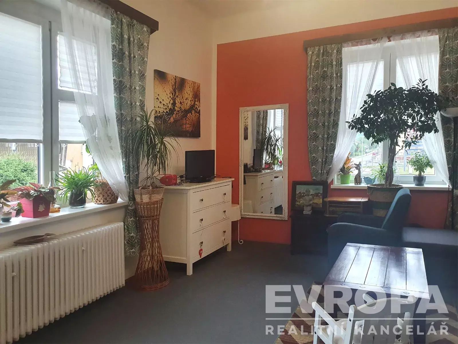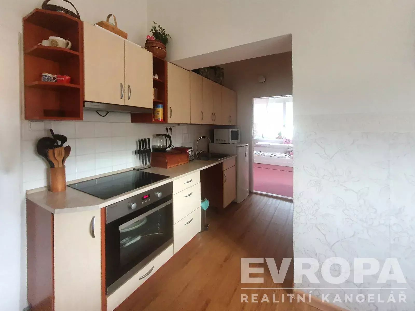 Po otevření vstupních dveří se nacházíte ve vstupní chodbě, ze které se vchází do kuchyně s jídelním koutem, ze které je vstup do obývacího pokoje a dalšího pokoje. Ze vstupní chodby je vchod do koupelny s vanou a samostatného WC. Jako skladovací prostor vám poslouží komora, která je umístěna mimo bytovou jednotku. Byt prošel rekonstrukcí, je vytápěn vlastním plynovým kotlem a majitel ho nabízí nezařízený. K bytu náleží přímo u objektu jedno parkovací místo.