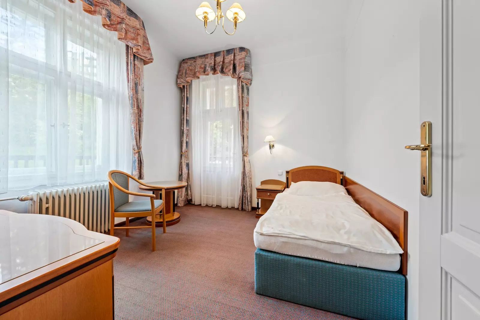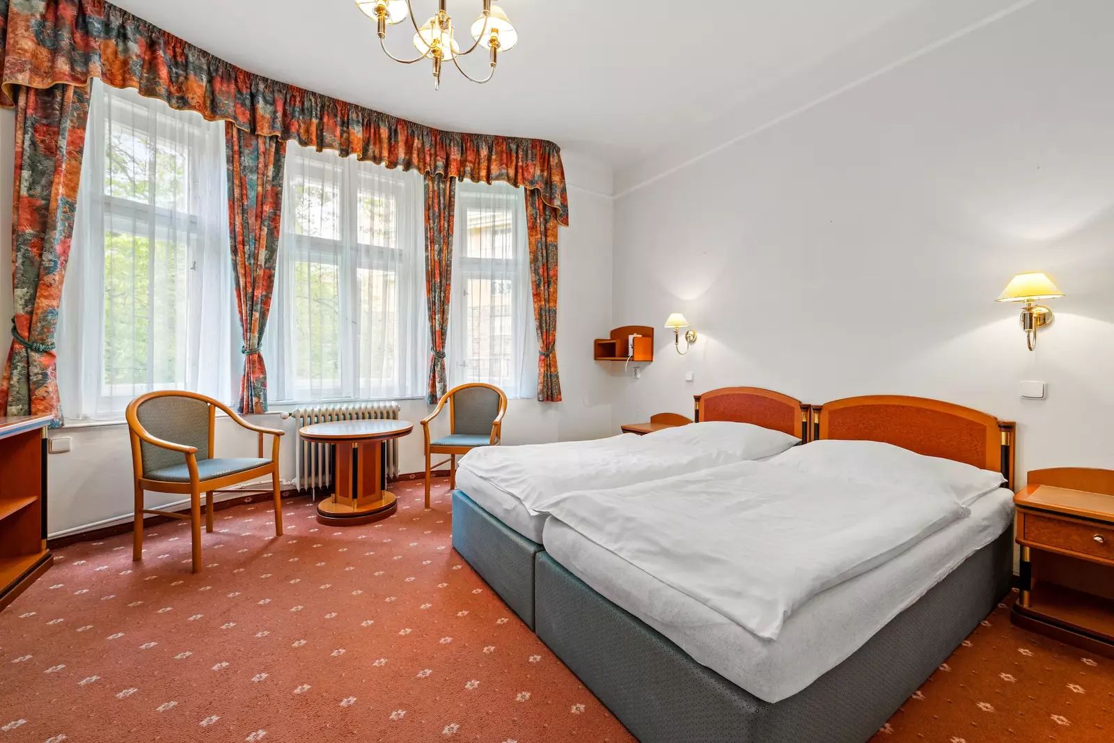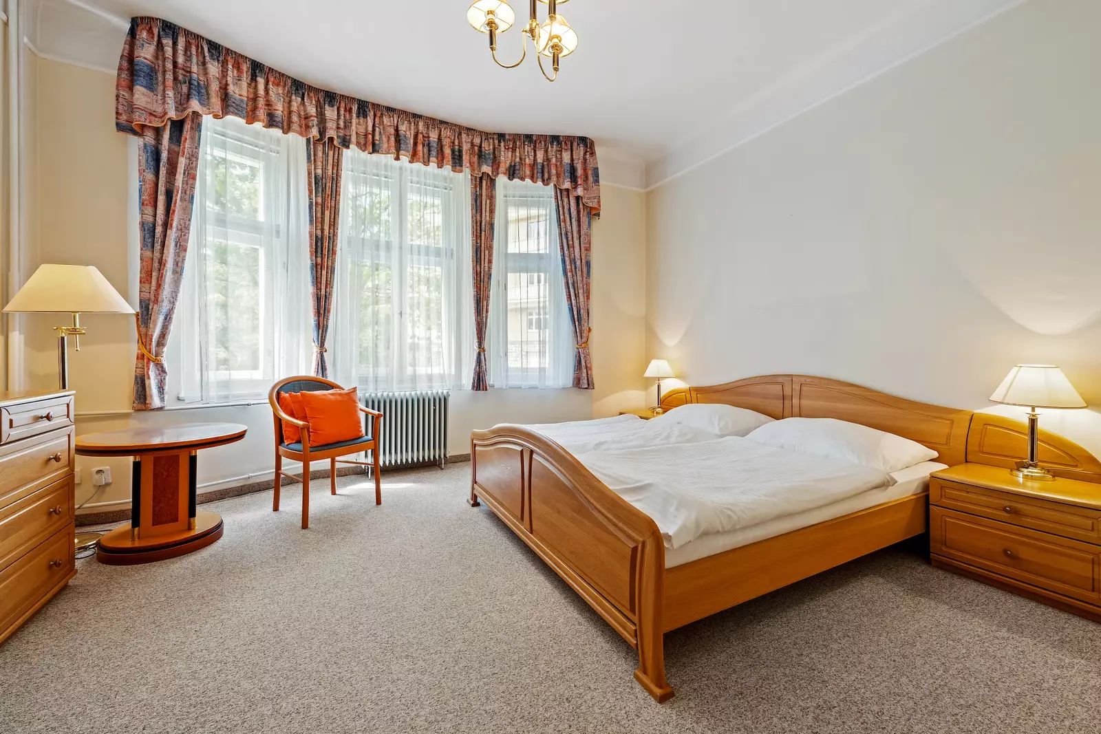 Exkluzivně nabízíme prodej hotelu v Karlových Varech. Spa Hotel Jadran se nachází cca 10 min od centra Karlových Varů v klidném místě v zahradě nedaleko hotelu Imperiál. Tříhvězdičkový hotel s 13 dvoulůžkovými pokojí vybavených WC, sprchou. V hotelu v přízemí restaurace, sauna, masážní prostory, včetně podvodních masáží, koupele. Ve druhém podlaží 5 pokojů, ve třetím a čtvrtém podlaží po 4 pokojích. Terasa 60m2, balkony. V podkroví solárium a ordinace zdravotní sestry. Vytápění plynovým kotlem. Na pozemku možnost parkování. Cena k jednání, objednejte si prohlídku a nabídněte vaši cenu.