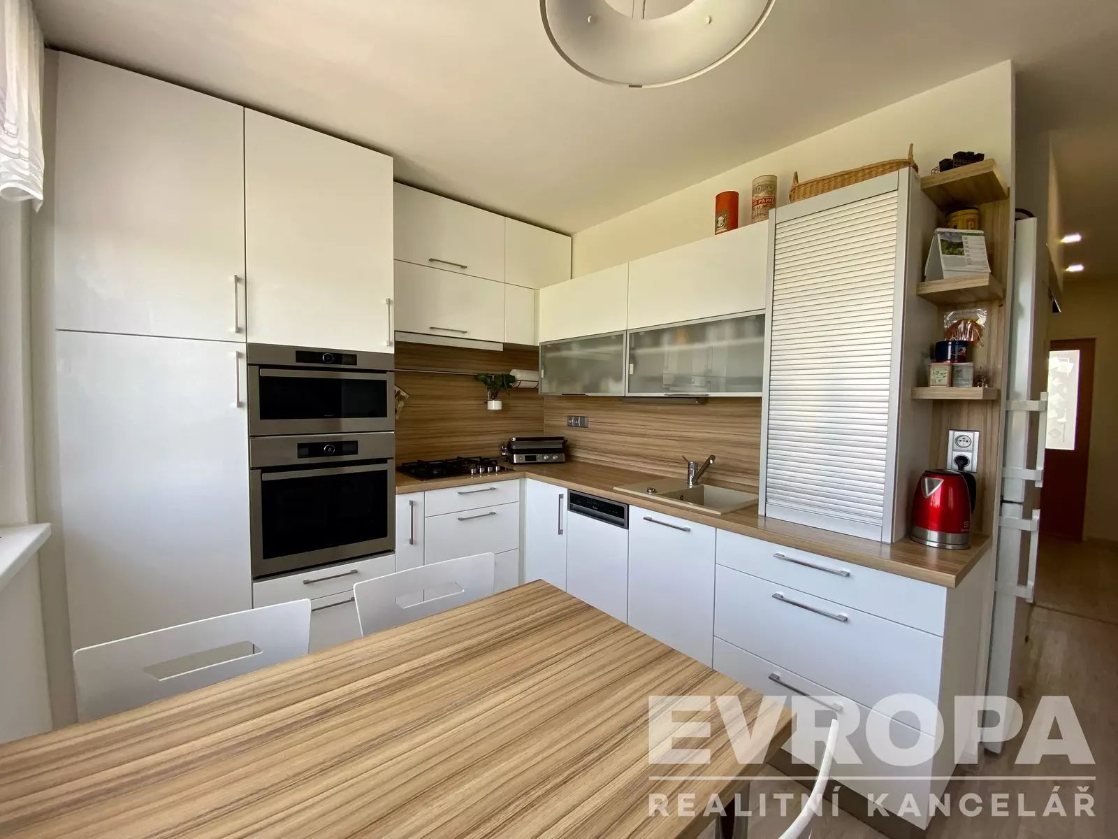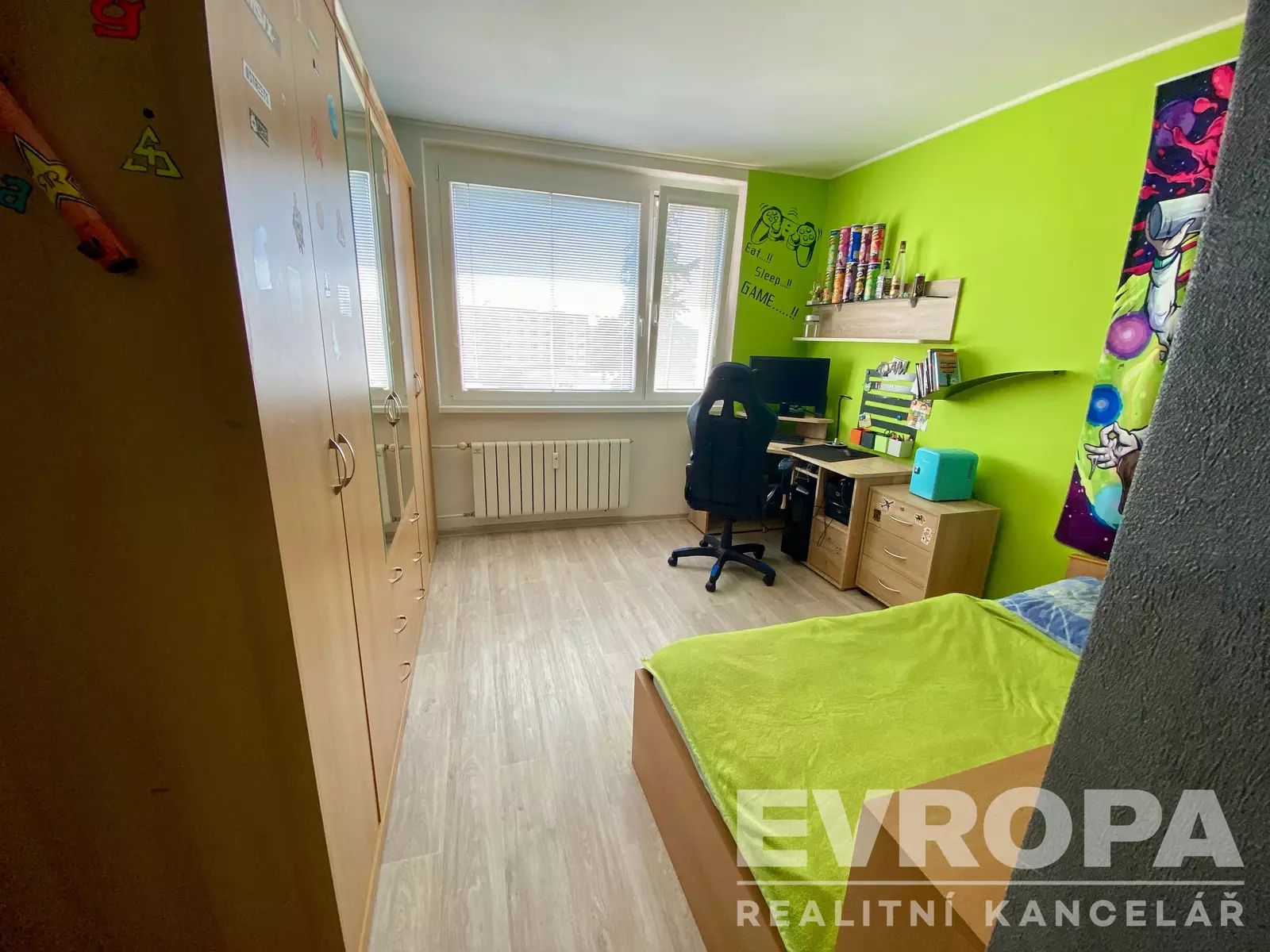 Dispozice bytu je 3+1, s úpravou užívání 4+1. Kuchyně je vybavena vestavěnými spotřebiči. V bytě jsou plastová okna s žaluziemi. Bytové jádro je zděné. Podlahy v bytě jsou vinylové Gerflor a keramická dlažba.